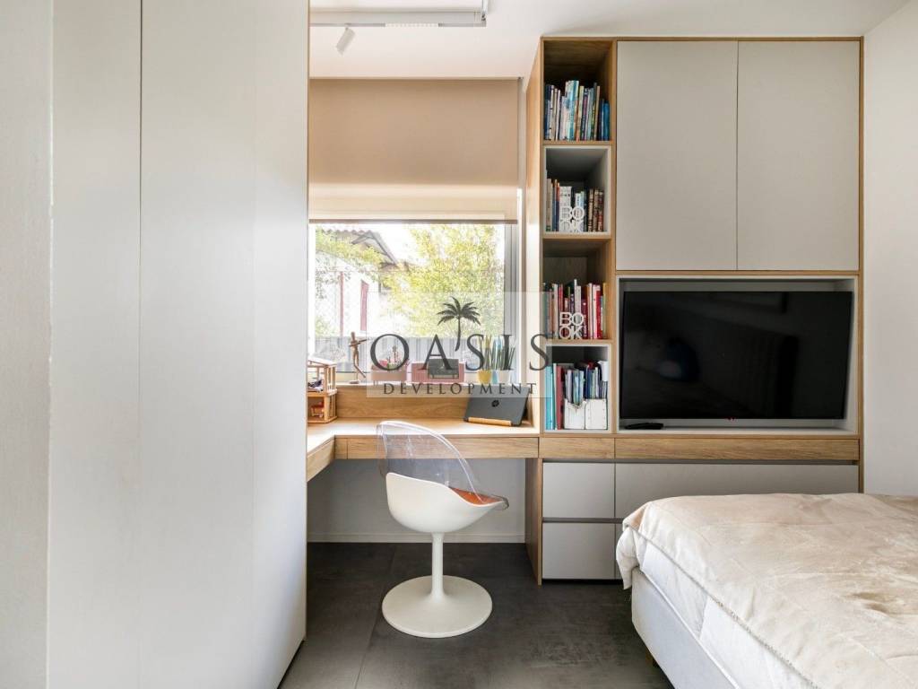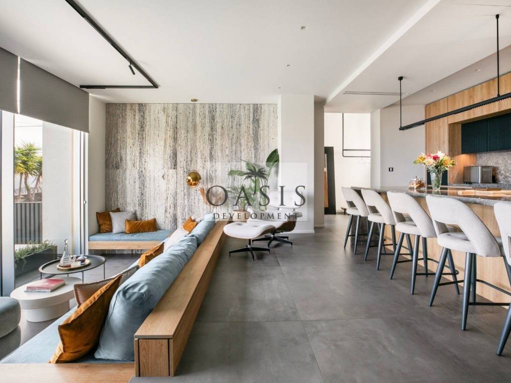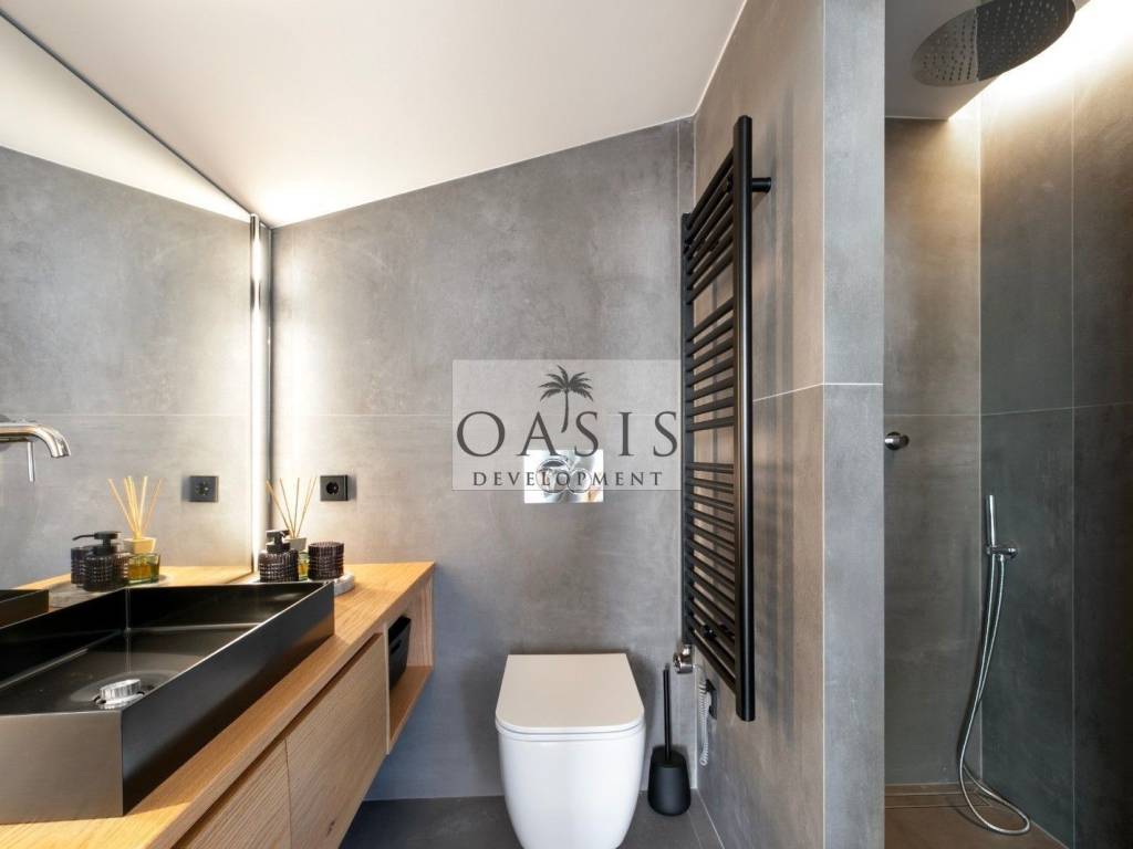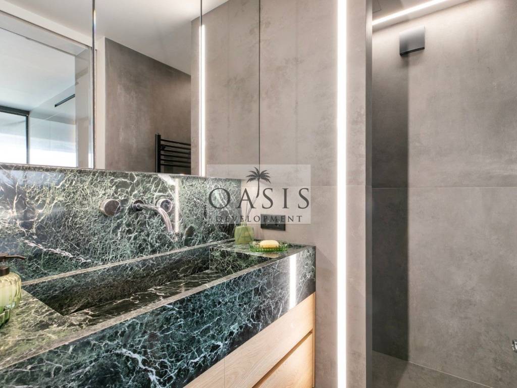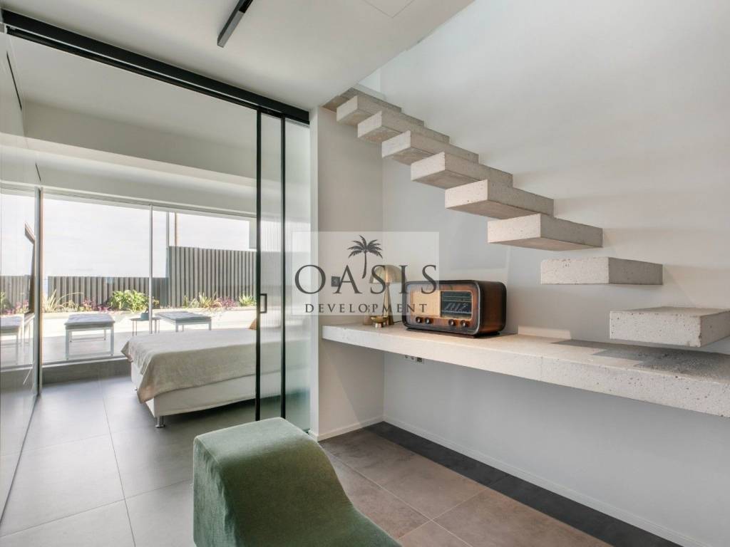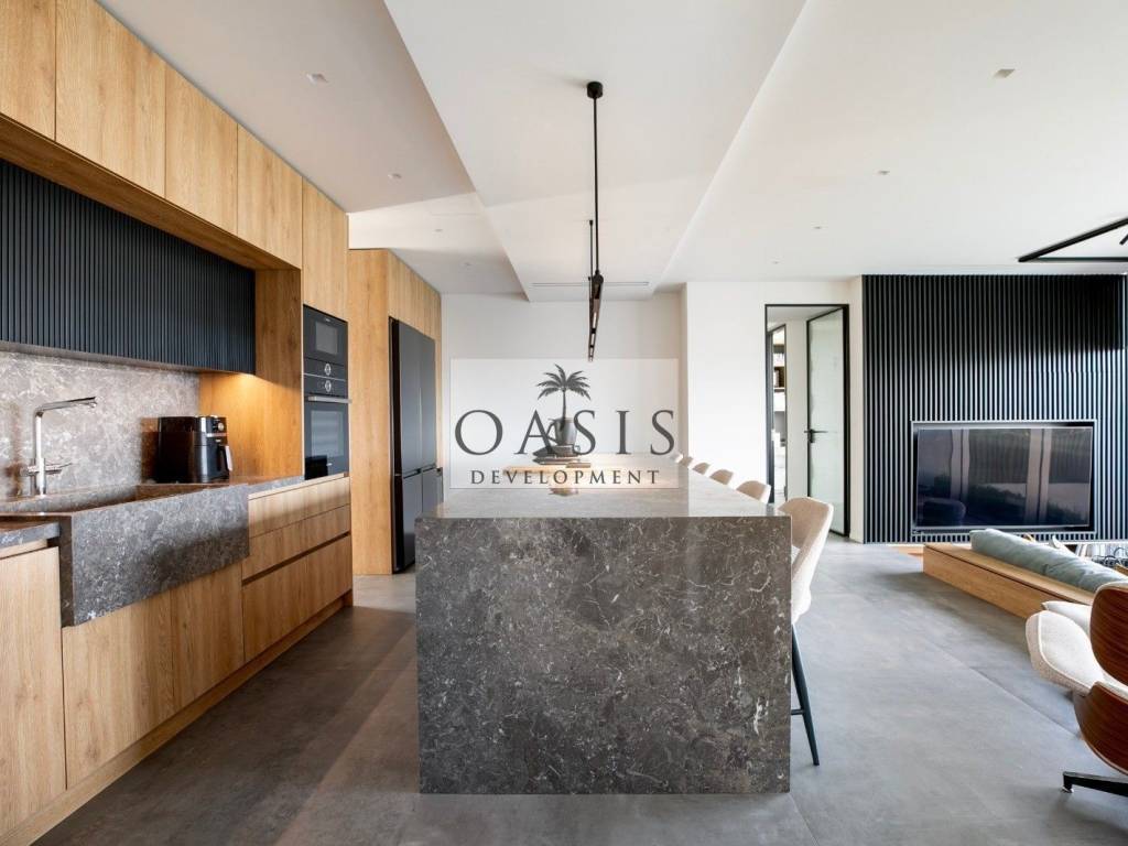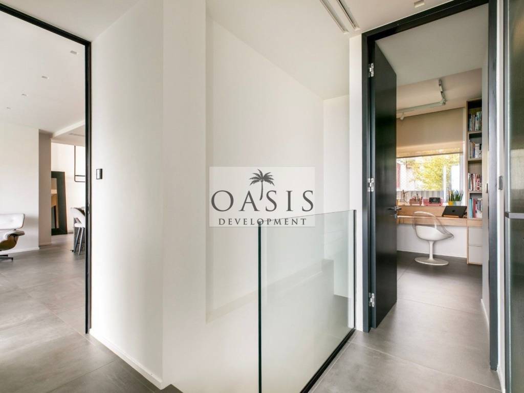A ridge above Rafina, and on it a single horizontal line: 190 square metres of glass, stone, and concrete arranged to hold the Aegean in view from almost every room. The house is built around restraint. Sliding panels retract into the walls, dissolving the threshold between the open-plan living floor and the terrace beyond. A rectangular pool sits on axis with the main room, squared against the horizon. Upstairs, three bedrooms and two marble-clad bathrooms share the same sea. A cantilevered concrete staircase rises between floors — each tread floating from the wall, unsupported, deliberate. On the pool level, an independent room with its own WC works as studio, guest suite, or retreat. Energy Class A+. Private parking, curated planting, an outdoor dining terrace. Minutes from Rafina port and the road to the airport — an architect's house, quietly made, that lets the coastline do most of the talking.