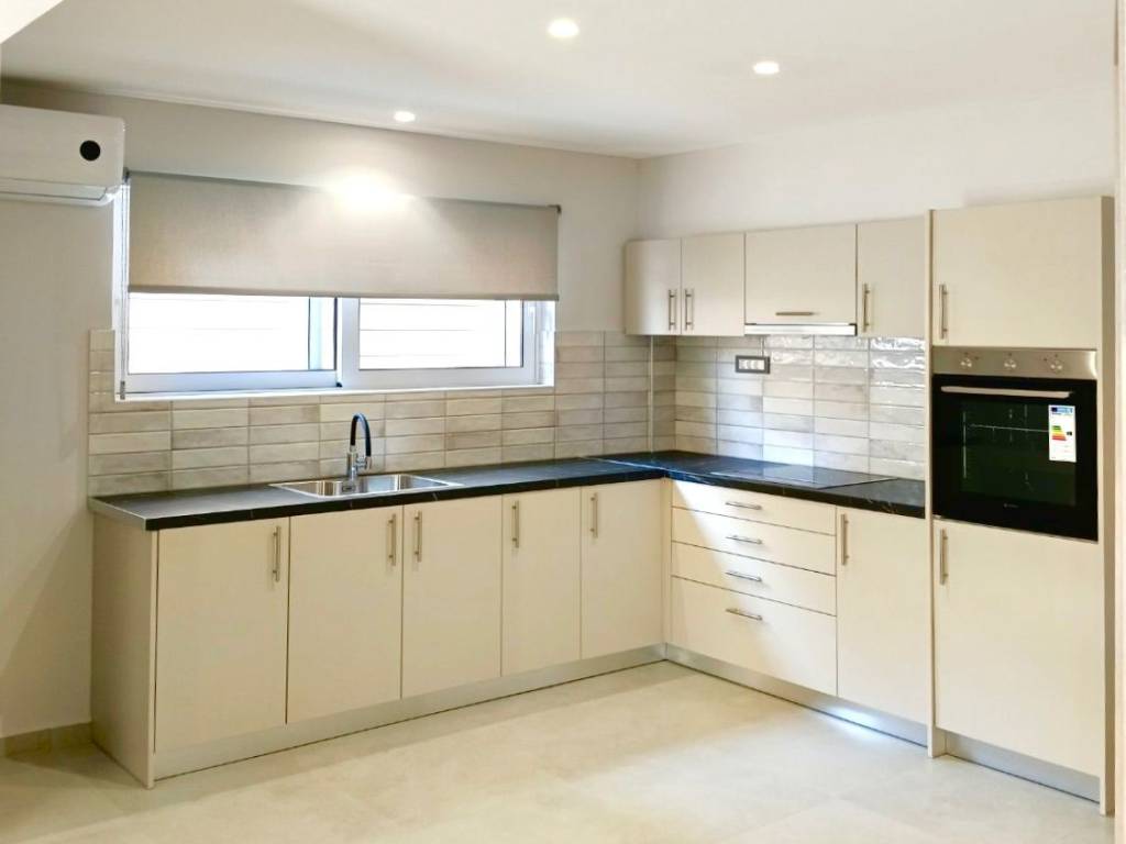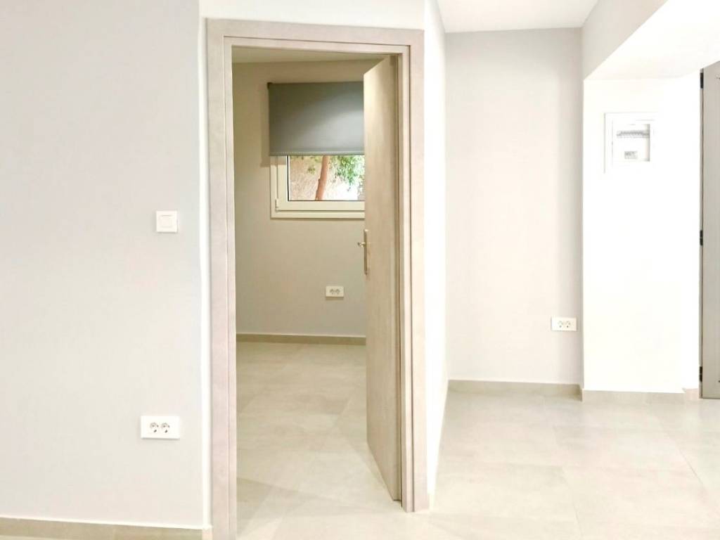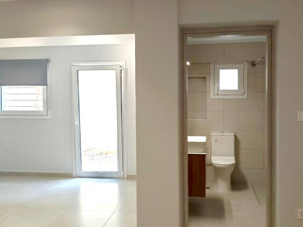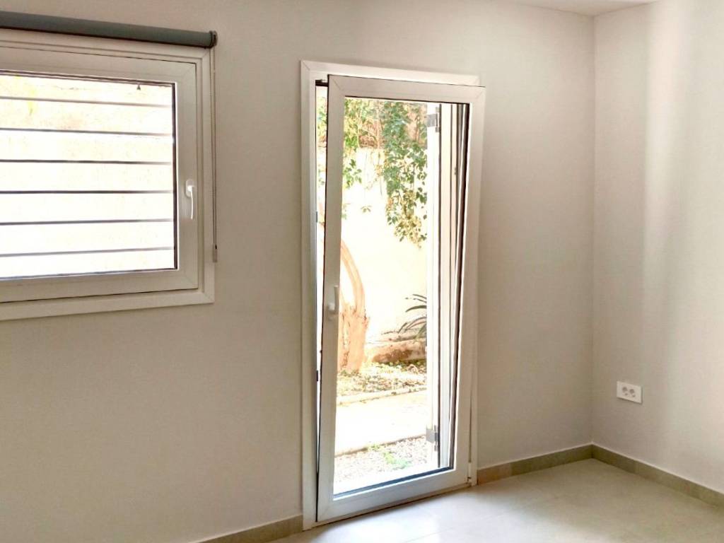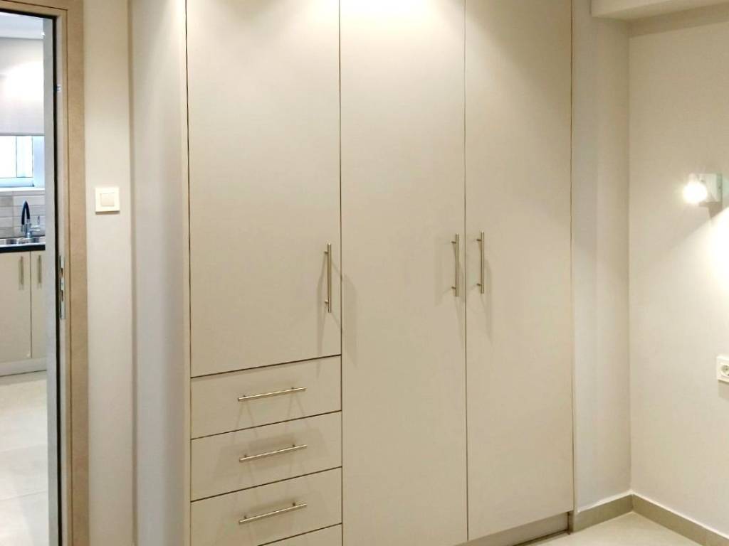 Newly built apartment for rent, 45 sq.m., semi-basement on Azofikis Street. It has: bedroom, open kitchen/living room and bathroom. The kitchen is equipped with brand new stoves & built-in oven. The apartment has its own, independent entrance, is bright, with new aluminum frames with screen, built-in wardrobe in the bedroom, and 1 air conditioner. Very few common expenses. Exclusive use of a small outdoor space. In a quiet neighborhood, close to a bus stop.