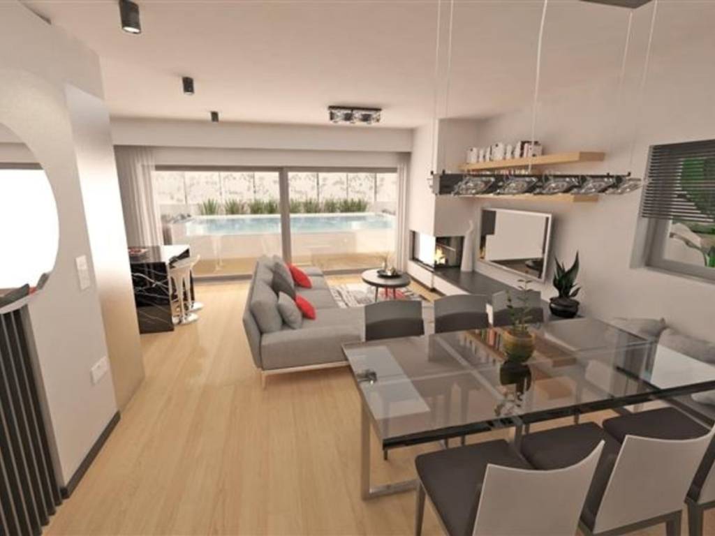 Under construction maisonette in Alimos developed across the ground floor and the 1st floor, featuring a total surface area of 105 sq.m. The property's location ensures an ideal combination of modern living and functionality in one of the most beautiful residential neighborhoods of the Southern Suburbs. The ground floor level includes a seamless and bright open-plan area with a living room, kitchen, and dining area, as well as a guest WC, offering comfort and direct access to the common spaces. On the 1st floor of the maisonette, the 3 bedrooms of the property are hosted along with the main bathroom, ensuring the necessary privacy for the whole family. As a property of modern specifications, it also includes a storage room and a parking space, fully covering every need for organization and security, along with a garden and a swimming pool. This is an exceptional proposal that combines modern architectural design with construction quality, offering the feeling and autonomy of a detached house.