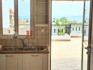 ρετιρέ 4ου ορόφου, ανακαινισμένο, προσόψεως και διαμπερές προς ενοικίαση, 110 τ.μ. και ανεξάρτητος χώρος 59,79 τ.μ. στο ισόγειο με 2 θέσεις στάθμευσης και μεγάλο αποθηκευτικό χώρο. 3 Υπνοδωμάτια, Σαλόνι με τζάκι, 1 Κουζίνα, 2 Μπάνια, Απεριόριστη Θέα Θάλασσα
