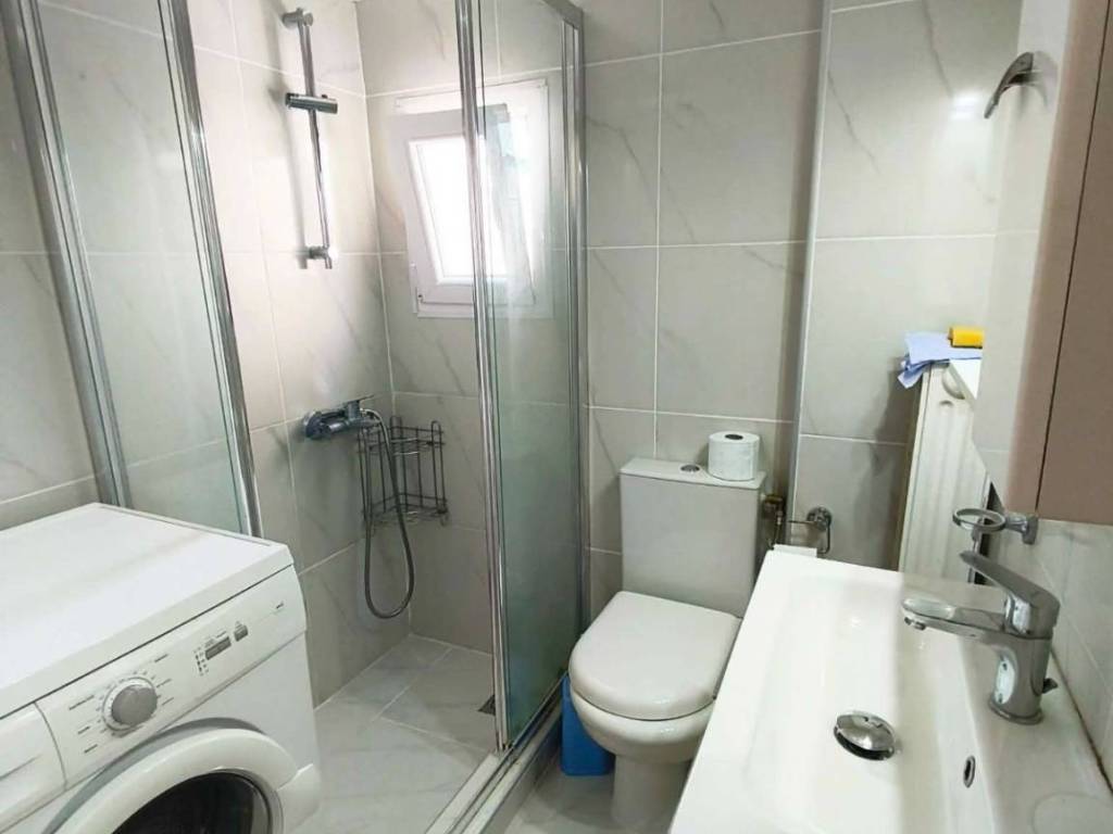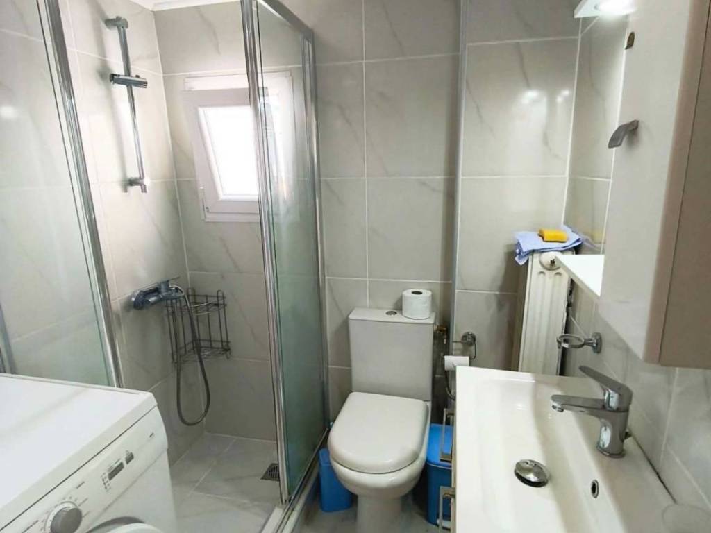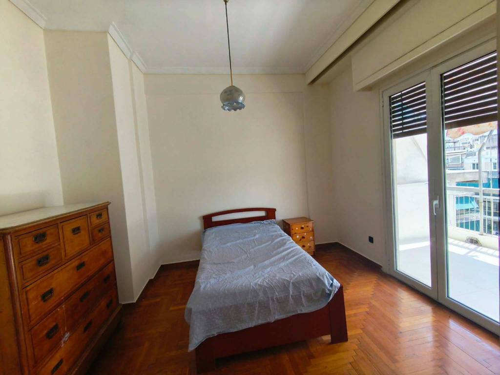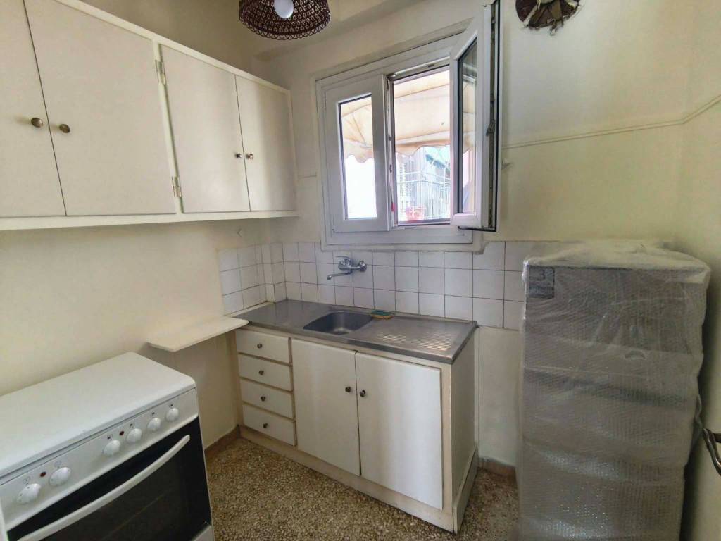 (code 11841) Ampelokipoi - Panormou: For rent bright Apartment 56 sq.m. facade on the 5th floor with elevator with central gas heating. It consists of 2 bedrooms, 1 closed kitchen, 1 living room, large front terrace 15 sq.m. and bathroom. It is painted. It is located close to Metro, public transport, market, schools, hospitals and has a view of the open and mountain. Aluminum frames with double glazing, security door, air conditioning, energy class D, mosaic, wood and tile floors, awnings, mosquito nets. It is ideal for a couple, students or families or workers. It is also furnished with electrical appliances (washing machine, refrigerator, stove) and beds, desks but also without some of them.
