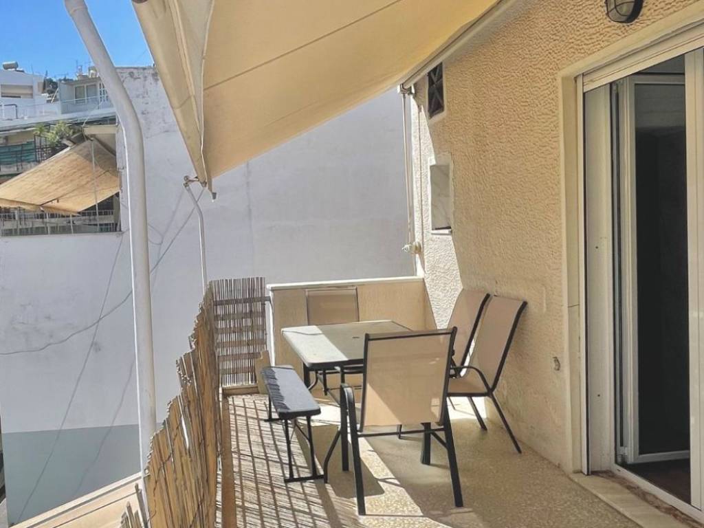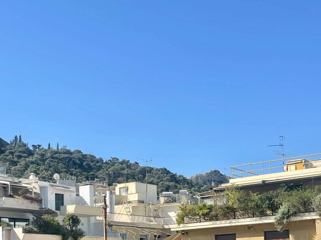 4th floor apartment (penthouse), in Neapoli Exarcheia, airy and bright, completely renovated in 2020 with security door, aluminum frames with double glazing, open space living room, office area, kitchen, has 1 bedroom, 1 bathroom, 1 veranda and 1 balcony with unlimited view of Lycabettus hill all with awnings. It has 2 a/c, all electrical appliances and is furnished. The apartment building has an elevator and minimal common expenses. It has direct access to public transportation and a parking lot.