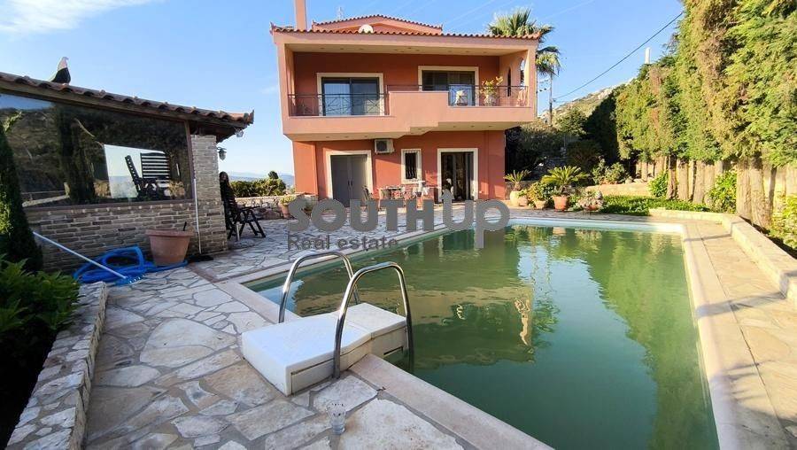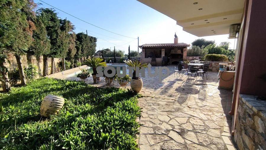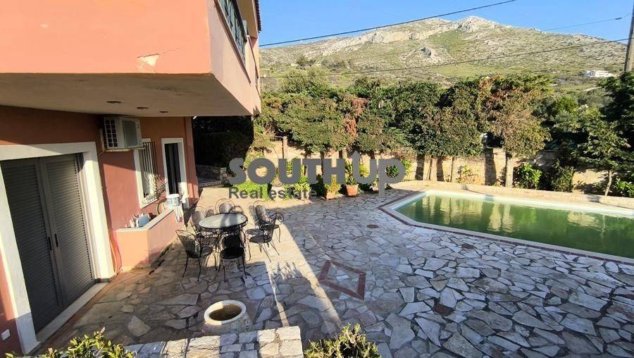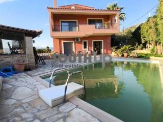 Kalyvia Thorikou - Detached House 280sqm plot 1000sqm, unfurnished, bedrooms 4, master bedroom, levels 4, ground floor (90sqm, living room, dinning room) - 1st (90sqm, 4 bedrooms, bathroom) - 2nd (90sqm, 2 living rooms, kitchen, wc) - attic (10sqm), excellent condition, year built 1998, energy class C, 2 living rooms, kitchen, wc, heating type: autonomous (oil), air condition, parking covered,2, quiet, dual aspect apartment, luminous, unobstructed view view, storage space, solar heater, fireplace, balconies, large balconies, tents, garden, garden 900sqm, built in appliances, aluminum frames, double glazed windows, door screen, marble & tile floors, three phase electricity, secure door, alarm, video doorbell, luxurious, private pool, internal staircase, barbeque, playroom, guest house, gym, internal elevator, residential zone, north-western orientation, access from asphalt, close to sea (up to 3000m), close to market (up to 1500m).