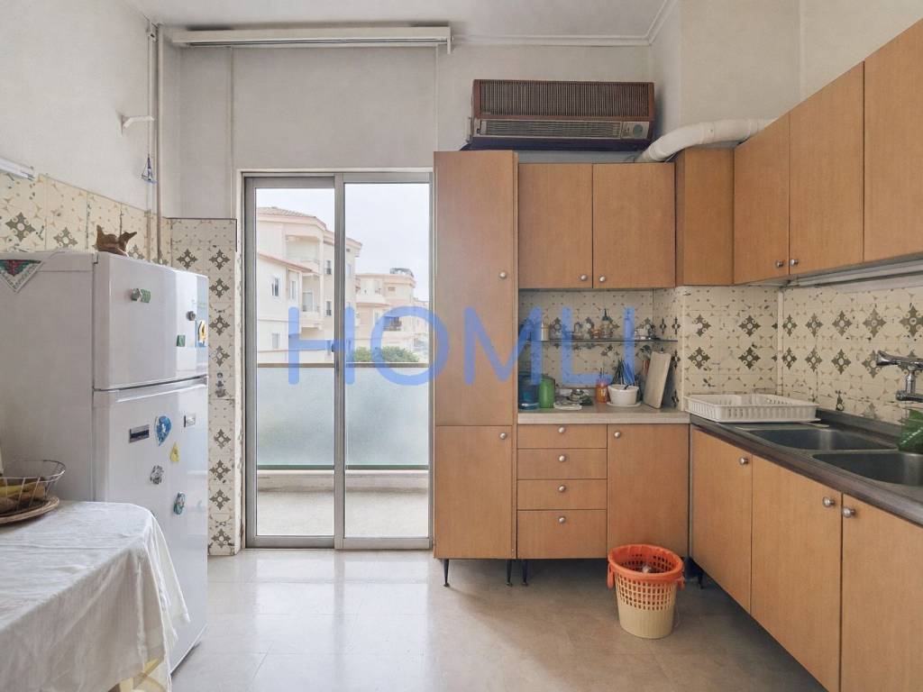 Spacious apartment with a corner balcony and a second bathroom, just a 5-minute walk from the Neos Iraklio station. It is bright and has an excellent layout, a comfortable living room, central oil heating, aluminum frames, awnings, an elevator, and a second bathroom. It is located in a privileged location, 400m from the Neos Iraklio electric train station, close to a local market, schools, parks, sports facilities, restaurants, and with easy access to main roads and Attiki Odos. HOMLI, property code 28205, contact us by phone at 2104446498.