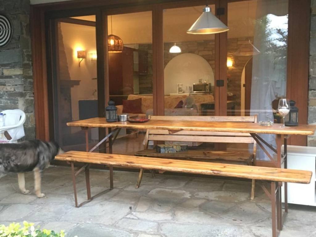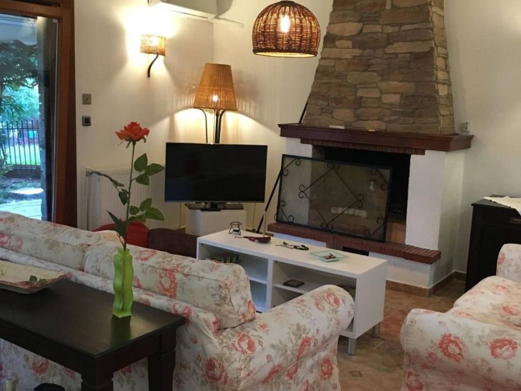 75 square meters apartment, located in the center of Panorama, near the central square, close to markets, cafeterias, and restaurants, in a peaceful quiet street. The apartment comes with 1 bedroom, with a big double bed, a big closet, a living room, with 2 sofas (one of which can open in a bed), a fully equipped kitchen with kitchenware, an oven, a coffee machine, a washing machine, microwaves, a dining area, and a bathroom. A flat-screen TV is provided. The windows have double glass, and screens and awnings for the rain and the sun. There are a long table and banquets, in the patio in the garden area. It's suitable for 1-2 individuals. A friendly and peaceful environment where you can enjoy the comfort of the fireplace during the winter and the freshness of the green garden during the spring and summer period. Comfortable sofas for relaxation to enjoy your staying. An orthopedic mattress on the wide double bed. The total price is 750,00 euros. This is concerning the rental price per month 600,00euros plus the utilities ( heating, air-conditioning, water facility, internet, and electricity fees) included.