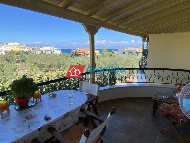 For sale is a fully furnished maisonette of 160 sq.m., located just 70 meters from the sea in the coastal area of Sykia, Xylokastro. Built in 2010, the property stands out for its high-quality construction and prime location and comprises three bedrooms, an open-plan living room and kitchen, and four bathrooms, with an internal staircase leading to a spacious attic. It features energy class D and independent oil heating. Modern amenities include sliding aluminum frames with double glazing and screens, a security door, built-in wardrobes, a fireplace, air conditioning, electrical appliances, awnings, and durable tiled flooring combining strength and style. Additionally, there is a 5 sq.m. storage room, private parking, and entry stairs. Its unique location ensures openness and unobstructed sea views, situated in a quiet neighborhood with easy access to local amenities. The property is 2 km from the town, 300 meters from the village, 3 km from the metro station, and 145 km from the airport, making it ideal for both permanent residence and holiday use.