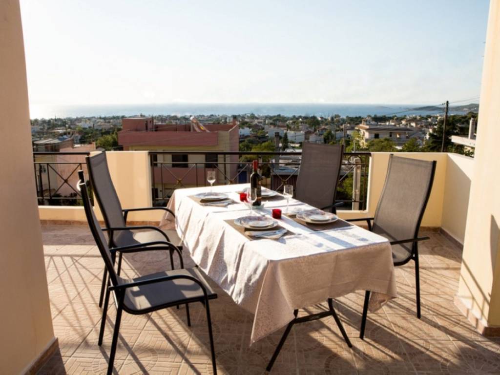 It is a sunny and independent 1st & 2nd floor apartment in a maisonette. In a quiet area, with unlimited sea views. Fully furnished and equipped. Available for short-term rental in other price per month with all the bills included or for longest term. It has solar, aluminum, double glazing, autonomous heating, air-conditioning and night charge electricity. Water bills are included in the price for longest term rental . The remaining bills are charged to the tenant. Pets are prohibited due to a serious health problem of the owner who lives on the ground floor, in another apartment.