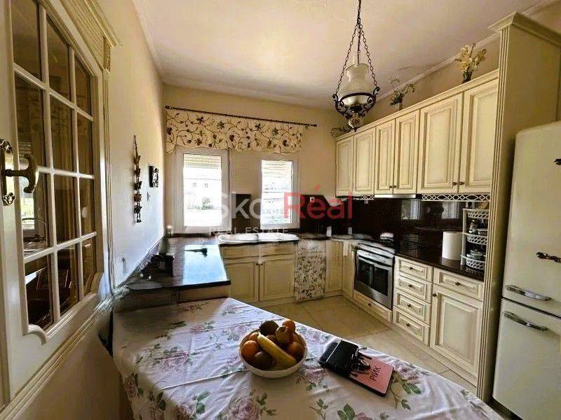 Property Code: 16223 - House FOR SALE in Vasilika Center for € 375.000 . This 354.00 sq. m. House is on the Ground Floor Elevated and features 4 Bedrooms, 2 Livingrooms, 2 Kitchens, 2 bathrooms and a WC. The property also boasts Heating system: Individual - Petrol, tiled floor, unobstructed view, Window frames: Synthetic, Armourplated door, parking, a storage unit 10 sq.m. sqm, garden, fireplace, A/C, heating per level, alarm system, electrical appliances, insect screens, double-glazed windows, entry stairs, BBQ, attic, ceramic roof, satellite dish, open space, internal staircase, balconies: 45 sqm. The building was constructed in 1993 Plot area: 830 s.q. Distance from sea 25000 meters, Distance from the city center: 20000 meters, Distance from nearest airport: 12000 meters,