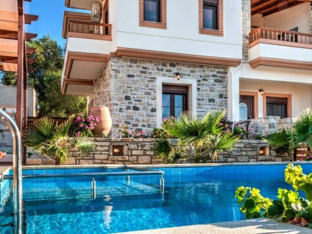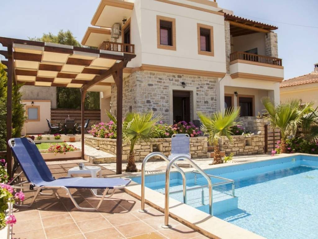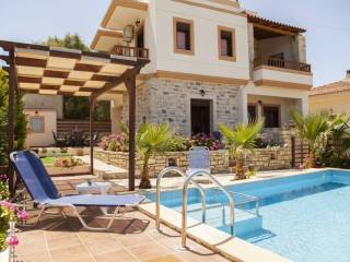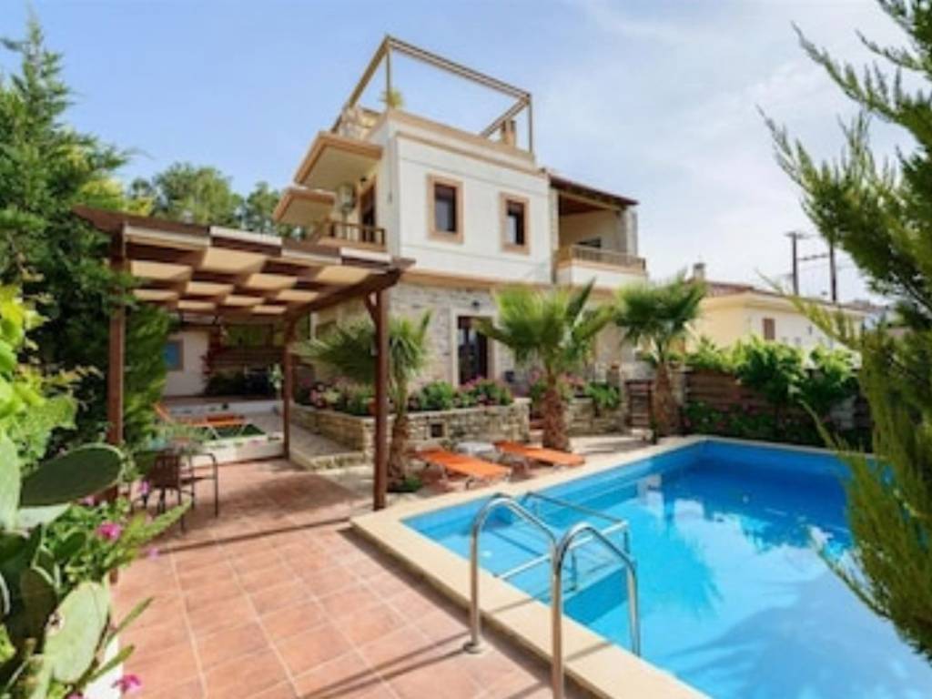Cette belle villa traditionnelle a une superficie totale de 115 m² et s'étend sur deux étages. Au rez-de-chaussée se trouvent une cuisine entièrement équipée, une salle à manger, une salle de bains et un spacieux salon et salle à manger avec une cheminée en pierre, donnant sur l'espace extérieur et la belle véranda avec la piscine. Un escalier intérieur mène au premier étage qui comprend 2 chambres, une grande salle de bains et un grand balcon avec vue sur les montagnes. Au troisième étage, une grande terrasse avec un coin salon offre une vue imprenable sur la montagne de Psiloritis et le village de Pitsidia. Toutes les chambres disposent d'un accès à Internet et d'une climatisation. L'espace extérieur comprend une piscine spacieuse avec un beau coin salon, un barbecue et un beau jardin fleuri. La propriété est située dans un quartier calme du village, à proximité des magasins et des tavernes, à quelques minutes seulement des plages de Matala et de Komos.