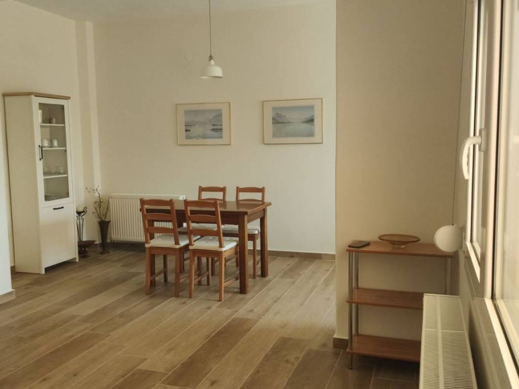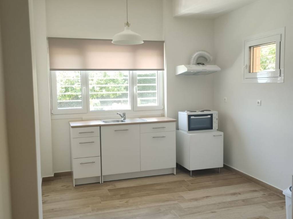 New ground floor 102m2 residence is available for rent in Trilofo of Themi. It has a very large bedroom with a WC inside and air-condition. An independent large bathroom and a spacious living room which communicates with the kitchen. It has central heating system (heat pump). It is located in a fenced area and has alarn system. In the rent are included the care of the surrounding area, the sewerage and the water. There are no shared expenses. In Trilofos there are shops, supermarkets, pharmacies, doctor's offices, etc. It is 20' from Thermi, Macedonia airport, the Mediterranean Cosmos, IKEA and Leroy Merlin shopping centers. Finally, in 15’-20' you are on the beaches of Perea and Potamos Epanomi Beach, while in 60' you are on the beaches of Halkidiki.