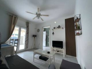 The apartment "Sirokos" is located on the 1st floor and has a west meridian orientation. It has its own balcony of 30 sq.m. It has no monthly utilities. It is a fully furnished and equipped apartment of 45 sq.m., just 50 meters from the beach and the pedestrian street. It has 2 separate rooms (bedroom & living room), kitchen, bathroom with shower. The bedroom has a double bed, and a ceiling fan. The kitchen has electrical appliances and a full collection of cookware. The living room has a TV, dining table, ceiling fan and sofa that becomes a double bed. Large bathroom with bath in which there is a washing machine. It has a new inverter A/C 18.000btu. Available for long term lease. Free wireless Internet is offered throughout the area. More information on the website http://****.**