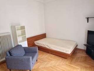 Studio apartment 28 m2, 4th floor, sunny, in a very well-maintained apartment building. Corner of Patision (Eleftheriou Venizelou) and Ithakis (entrance from Ithakis), 80 meters from Agios Georgios Square. It does not face Patision so it is very quiet. Five min walking to Victoria Metro station. Includes a room, carpet, separate spacious kitchen and bathroom, balcony. Central heating with natural gas, LG air conditioning for cooling and heating. Available furnished, with a semi-double bed, Cocomat mattress, armchair, desk, office chair, TV, refrigerator, small kitchen with oven and 2 burners, new washing maschine for clothes with wifi capability. In a renovation two years ago we added, aluminum frames, double glazing, bathroom renovation, video door entry system were installed. New floor in kitchen and hall, security lock, change of awning on balcony . Wooden floor in main room and laminated in other rooms. Shared average 11€ per month (14 - 17€ in winter months and 8-10€ in other months. which includes heating). The amount is so small because the apartment building has 41 apartments and the percentage of participation is very small. There are receipts from previous months to show. Area with direct access to food stores (super market at 50 meters), shopping and entertainment points, on Patision, Fokionos Negri, Agios Georgios Square, etc. Available from a private individual. Not available for rent for less than a year. No brokers