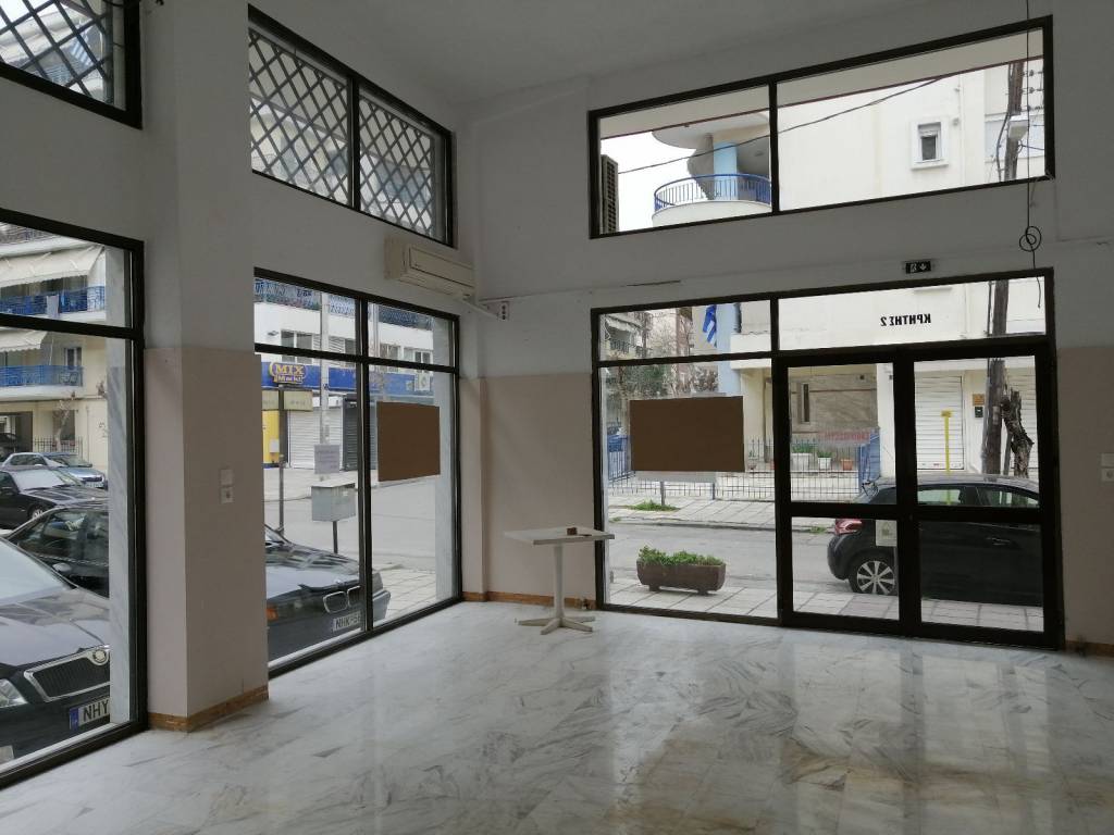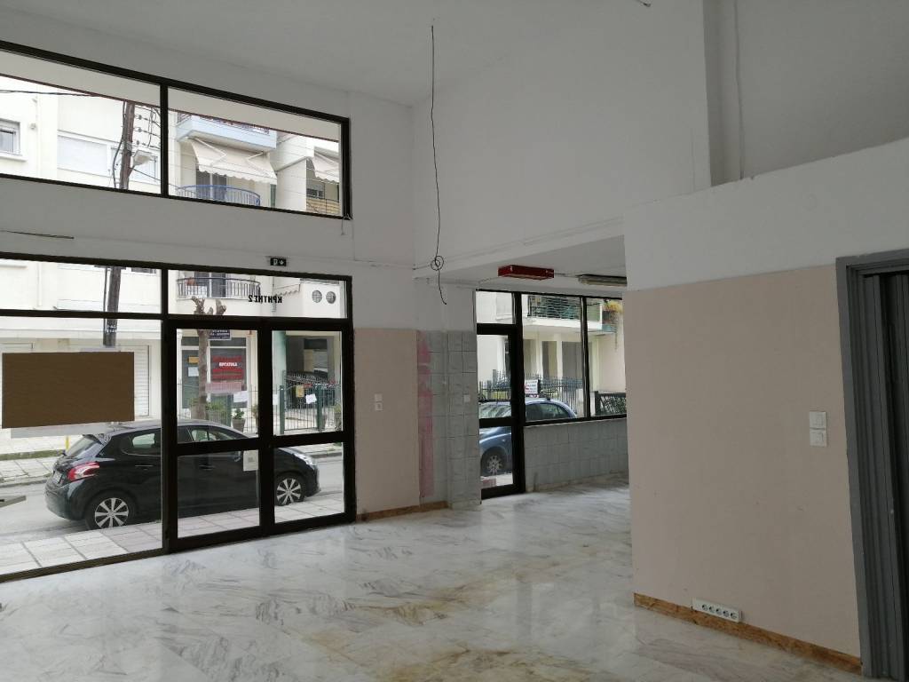 ΕΝΟΙΚΙΑΖΕΤΑΙ κατάστημα 60μ2, Είναι γωνιακό σε εμπορική θέση, έχει μεγάλη κίνηση αυτοκινήτων και πεζών, είναι καλό για οποιαδήποτε χρήση, δέν δίνεται για ταβέρνα ή καφενείο, έχει στίς δύο πλευρές τζαμαρία σε ύψος 5 μέτρων οπότε γίνεται μεγάλη βιτρίνα, τό δάπεδο είναι λευκό μάρμαρο πρόσφατα γυαλισμένο δέν έχει καθόλου κοινόχρηστα, έχει κλιματιστικό, μόνωση 10εκατ στο ταβάνι, μεγάλο πεζοδρόμιο. είναι ένα τετράγωνο απο τήν οδό Μοναστηρίου, εύκολη πρόσβαση στον περιφερειακό