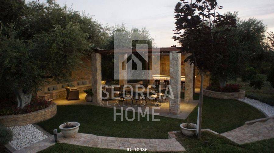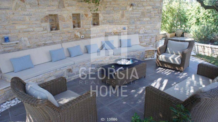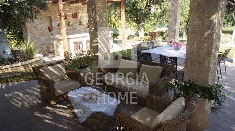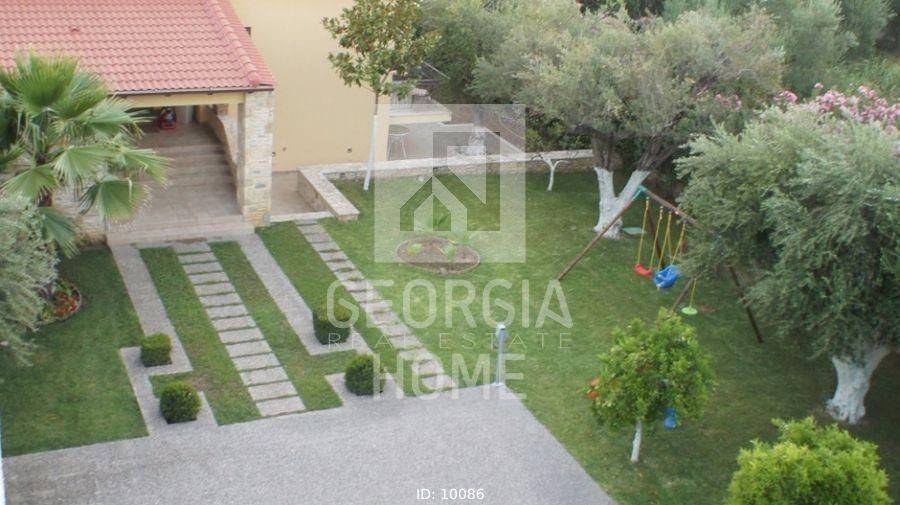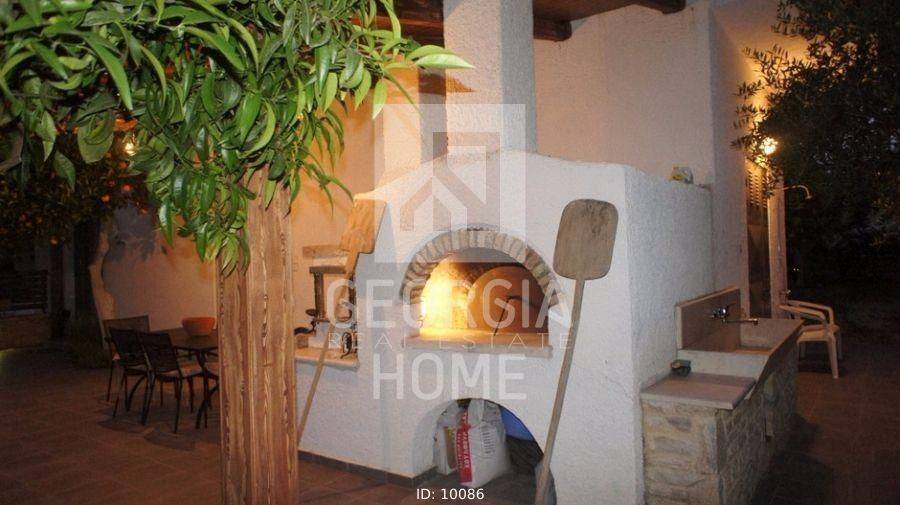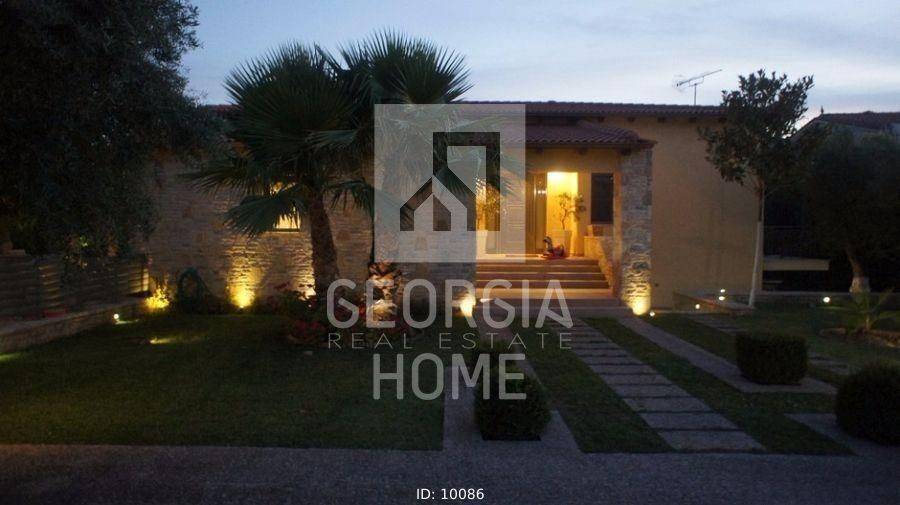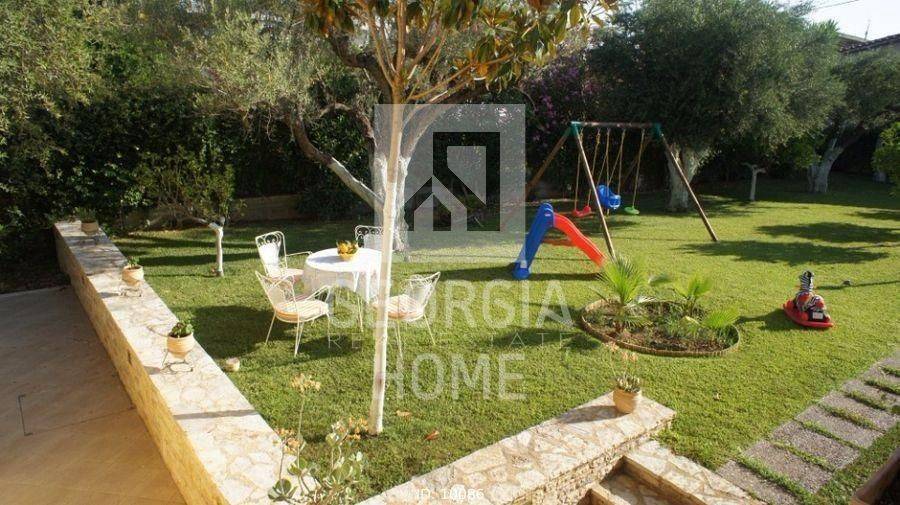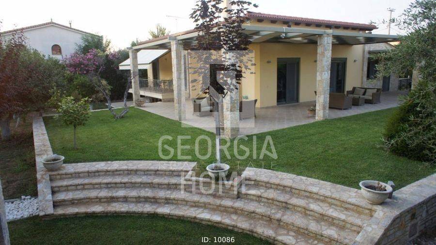 Paralia (Achaia), Centre - Villa 150sqm plot 150sqm, fully furnished, bedrooms 3, levels 1, ground floor, year built 2007, energy class B+, living room, kitchen, bathroom, air condition, parking, parking type/lots, dual aspect apartment, luminous, corner, frontage, painted, storage space, fireplace, tents, garden, aluminum frames, double glazed windows, door screen, ceramic tiles floors, secure door, alarm, luxurious, under floor heating, internal staircase, satellite, pets allowed, residential zone, east-western orientation, access from inclined, investment property, close to sea (up to 1500m).