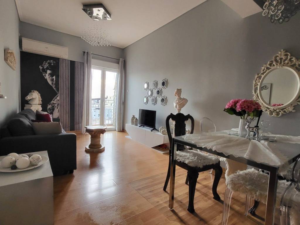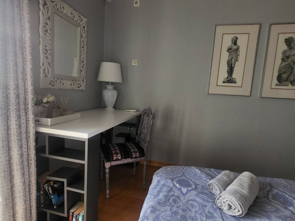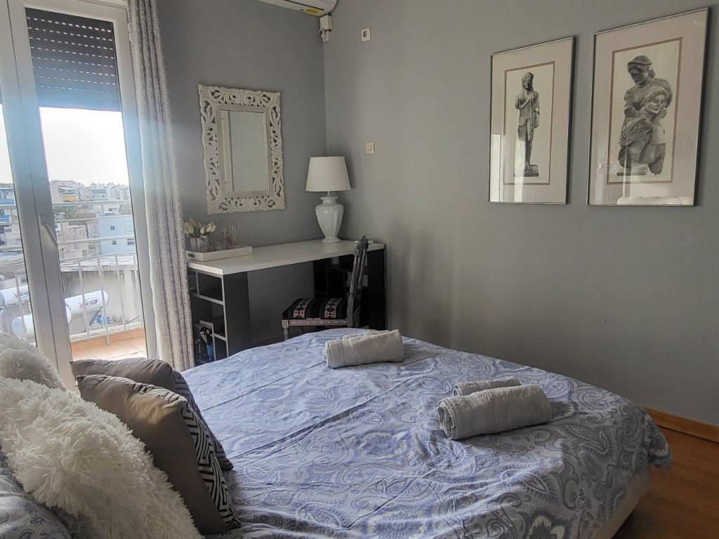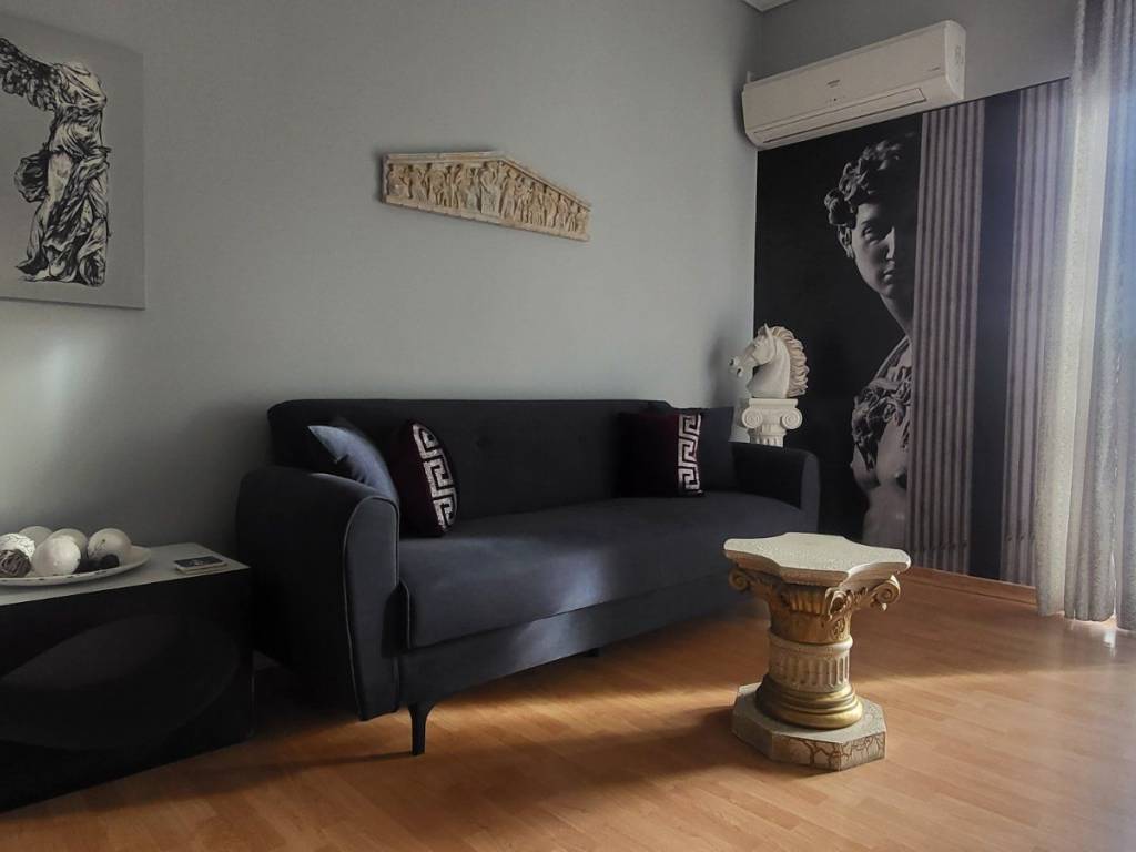 The apartment is fully furnished 47m2 and inspired from ancient Greece and Apollo God, who was the most beautiful god and recognized as mostly the god of light. Features one King size bed with access to a pleasant balcony with breathtaking Acropolis view. It comes with air-con appliances, with books and games for your free time. Access to the apartment is easy as there is an elevator that can take you to the 5th floor. For your convenience we have also provided an Iron, hair dryer and gowns and towels. Only 5min walk (200m) to Metaxourgio metro station. In the apartment we have a comfortable living room and a fully equipped kitchen with a coffee maker, toaster, espresso machine, French coffee machine, boiler, microwave and washing machine-drier BILLS ARE NOT INCLUDED (electricity, water, wifi, and building costs). 1 month payment in advance. No real estate agencies.
