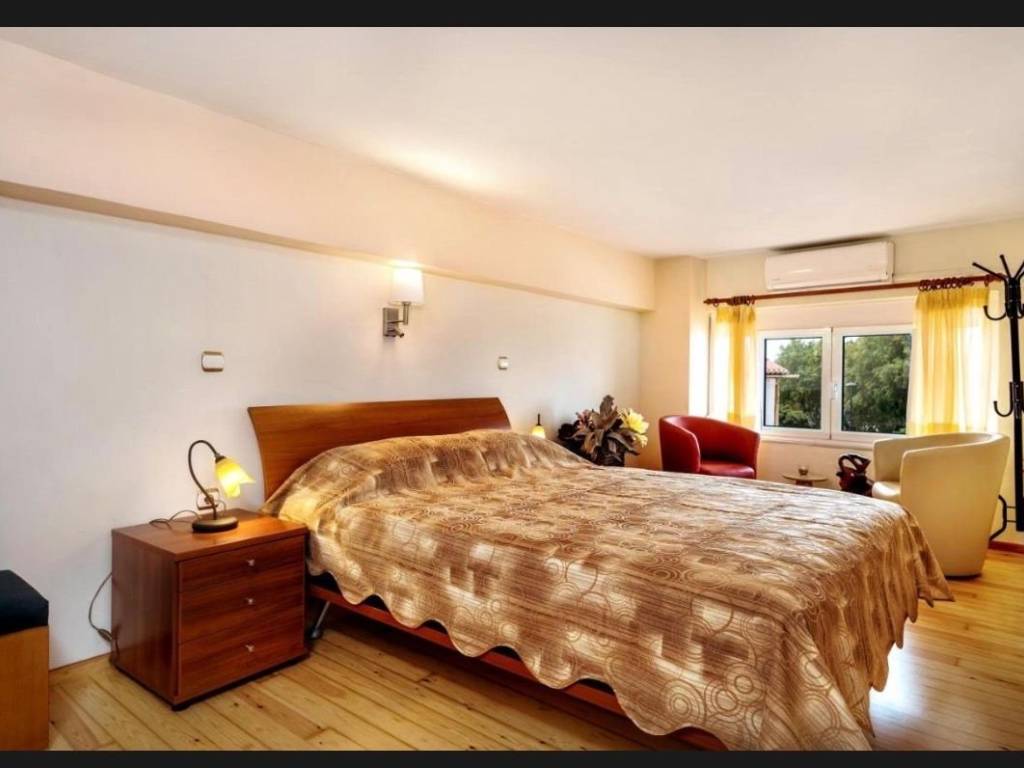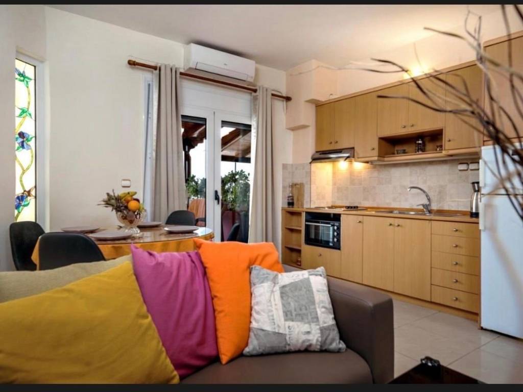 2 - bedroom ground floor apartment, we prefer long - term rental (1 year minimum!), but will consider shorter requests as well. This split - level apartment is 75 m2. On the ground floor there is a big well - equipped kitchen, sitting area and a big bathroom. Wooden stairs lead you to the upper level where you will find two bedrooms (one with king size bed and one with double bed) and changing room. Windows of both bedrooms look over the sea. There is a furnished terrace. Location: Nea Chora, sea - side area of Chania, 1 km from the old town. Monthly price - 960 euro + utility bills + 40€ cleaning and usage of shared spaces. Wi- Fi invluded.