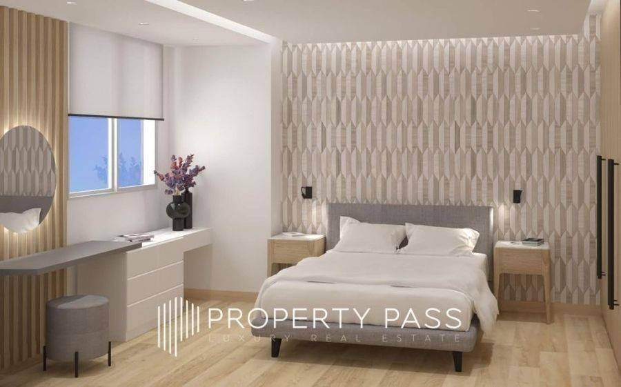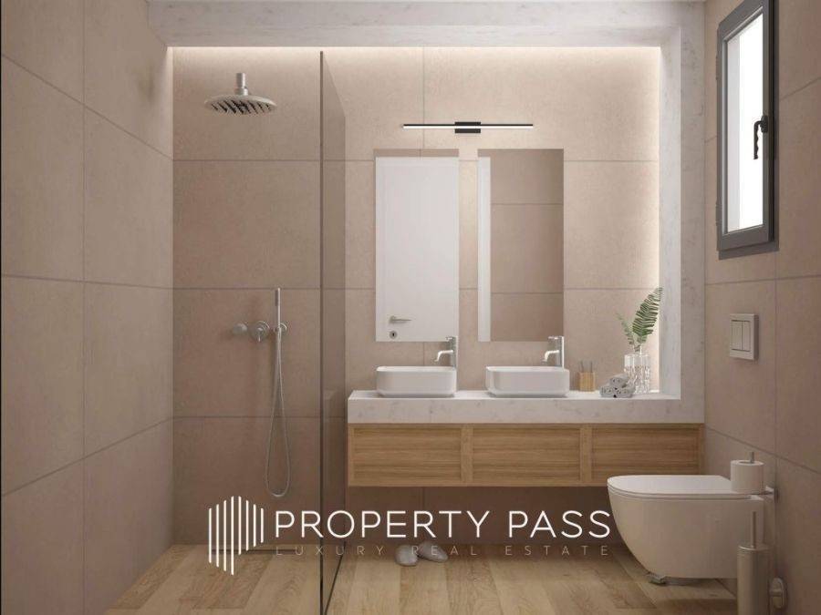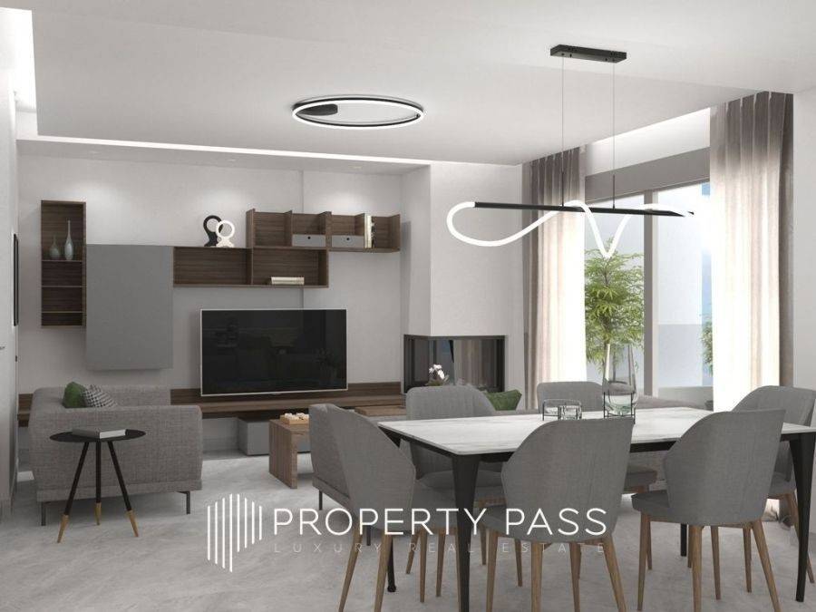 Nikaia, 7-8th floor maisonette of 157 sq.m. with private 40 sq.m. roof garden. It consists of living room with fireplace, dining room, kitchen, 3 B/R (2 master with en-suite bathrooms and walk-in wardrobes), an additional bathroom and WC with shower. It has energy thermal break aluminum frames with energy glazed windows, thermal facade throughout the building, anti-seismic shielding, sound insulation, autonomous underfloor heating with heat pumps, dual solar water heater energy, CCTV, large verandas, storage room and parking space. Delivery date: 11/2025 The point on the map is not indicative of the address, Price: 560.000€. PROPERTY PASS - Real Estate Services, Tel: +30 2106744660, www.propertypass.gr email: info@propertypass.gr