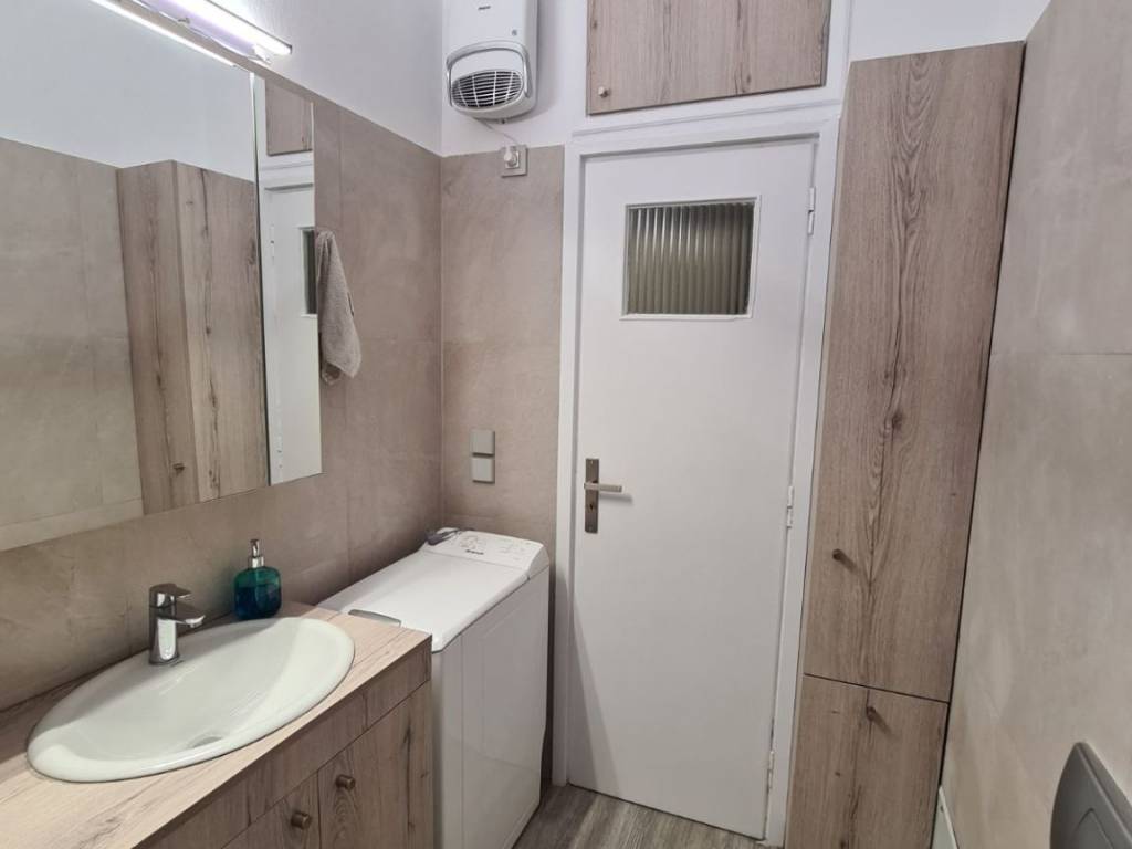 Fully renovated (2024) with electical appliances (electic kitchen, fridge, washing machine, 2 TVs). Has a security door,aluminum frames with sieves, air condition, solar water heating, night electic power, low shared bills, yard 15 s.m. Close to commute