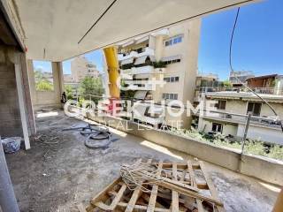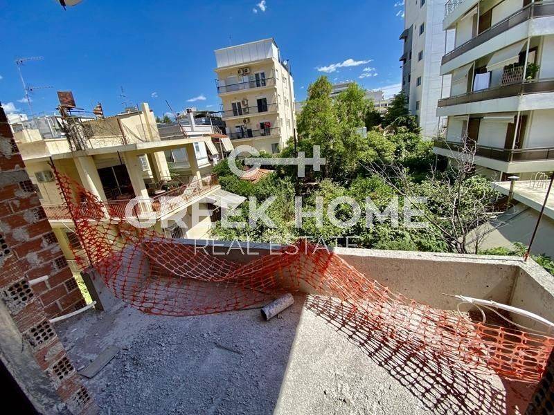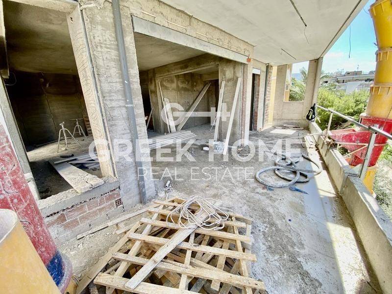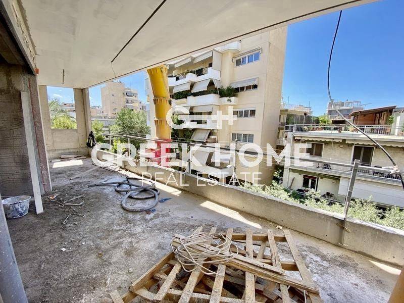 Nea Smyrni - Floor Apartment 104sqm bedrooms 3, 3rd, under construction, year built 2024, energy class A, living room, hall, kitchen, bathroom, wc, heating type: individual unit (natural gas), air condition, parking ground floor, quiet, dual aspect apartment, luminous, unobstructed view view, frontage, electric roller shutters, storage space 9sqm, solar heater, external thermal insulation, fireplace, balconies, large balconies, balcony 30sqm, tents, elevator, thermal shut-off frames, double glazed windows, door screen, wood & tile floors, handicap ramp, secure door, alarm, video doorbell, internet, pets allowed, price is negotiable, special offer, close to tram station (up to 200m), close to park (up to 100m), close to school (up to 100m).