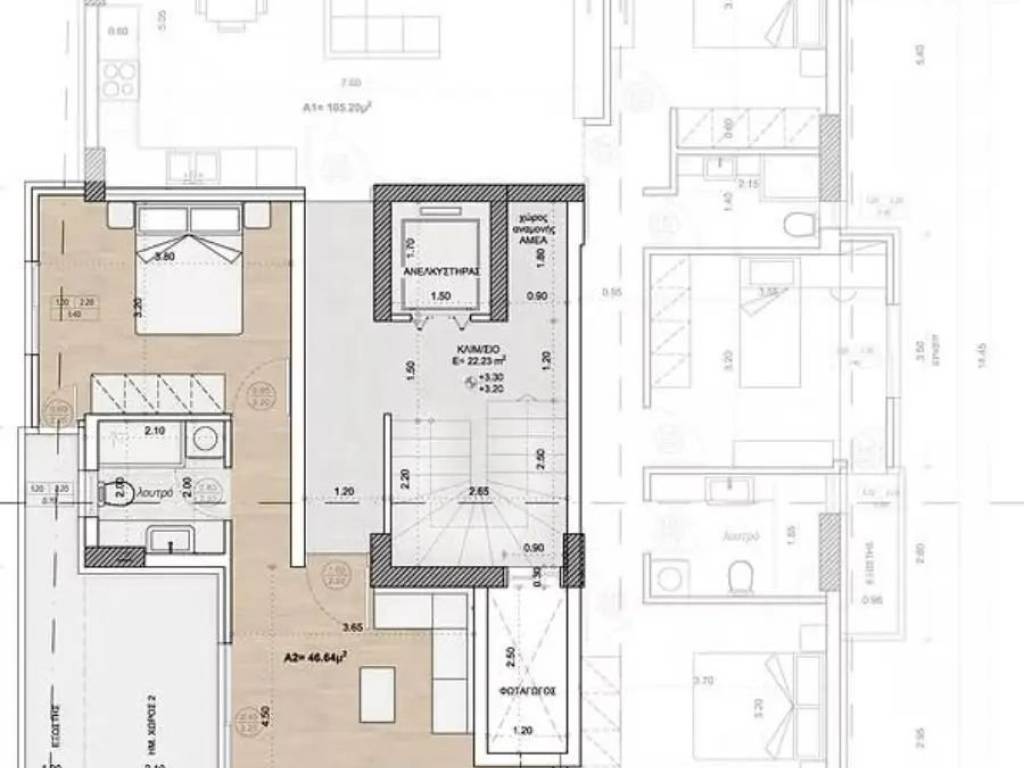 Papagou, apartment of 28 sq.m. on the 2nd floor. It consists of 1 bedroom, kitchen-living room and bathroom. It is under construction, energy class A and has pilotis parking, basement storage, wooden floors, heat insulating frames, energy glazing, external thermal insulation shell, underfloor heating, heat pump, fan coil units for cooling, alarm, screens, solar collector and power supply for electric vehicle charger. High standard construction - Price: €140,000