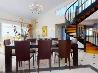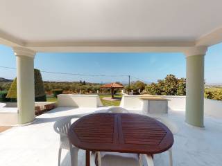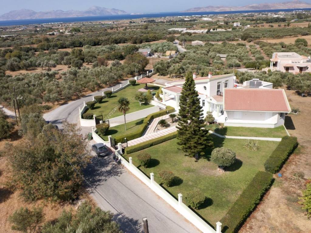 With a total of 217 m² of living space, this fantastic summer house, which was built in 2001 on a 5,000 m² plot, is a special holiday residence. You enter the property via the main entrance and are immediately welcomed into the light-flooded rooms. The large, bright area includes a cozy living area with fireplace, the spacious dining area, the second living room with terrace access and the open kitchen together offer plenty of space for family and friends. The terrace offers an outstanding view of your garden, the island of Kos, the Mediterranean and the neighboring island of Kalimnos. You can also reach the large gallery from the living area and from there you have access to the XXL roof terrace. Architecturally sensibly designed, the four bedrooms and three bathrooms are cleanly separated from the living area. The master bedroom has a master bath. The room is spacious and you will find a built-in wardrobe here and from here you can also reach a balcony. The second bedroom is also spacious and has access to the identical balcony. There is another bathroom directly opposite, this one is equipped with a shower, a sink and a toilet. The two additional bedrooms are located at the end of the hallway and, thanks to their location, have a fantastic view of the large garden and the adjacent mountains. Both share a covered terrace. The third daylight bathroom with bathtub, sink and toilet is also located here. In the basement you will find a large garage with enough space for several cars. In addition, there are several square meters of expansion reserve here (perfect for fitness or wellness, for example!). We would be happy to present this extraordinary property to you in a private viewing.