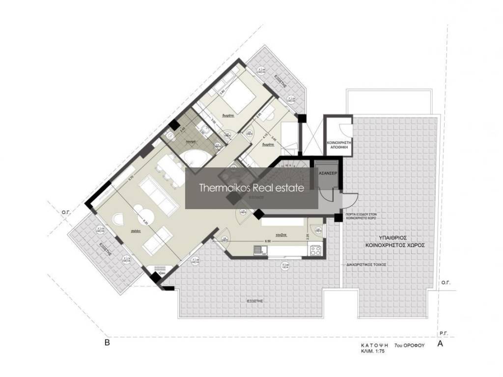 "Τούμπα - Κάτω Τούμπα" Πωλείται νεόδμητο, Μοναδικό οροφοδιαμέρισμα, πρόσοψης 100τ.μ.. -Πρόκειται για ένα γωνιακό, διαμπερές και φωτεινό ακίνητο. -Βρίσκεται στον 7ο και τελευταίο όροφο της οικοδομής και διαθέτει ασανσέρ. -Το ακίνητο αποτελεί μια αξιόλογη επιλογή για οικογένειες και εργαζόμενους. -Κατασκευάστηκε το 2006. Αποτελείται από 2 υπνοδωμάτια με ντουλάπες, σαλοκουζίνα, 1 μπάνιο και 1 WC. -Επιπλέον διαθέτει μεγάλη βεράντα, -αποθήκη υπογείου και -θέση στάθμευσης. Στα εσωτερικά του στοιχεία αξίζει να σημειωθούν η πόρτα ασφαλείας, το τζάκι προεγκατάσταση συναγερμού και κλιματισμού. Διαθέτει κουφώματα αλουμινίου με διπλά τζάμια. -Στα μπαλκόνια του υπάρχουν και τέντες. -Τα δάπεδα είναι από πλακάκια. Διαθέτει αυτόνομη θέρμανση με φυσικό αέριο (ατομική). Η ενεργειακή του κλάση είναι B+. -Ο προσανατολισμός είναι νοτιοδυτικός. -Έχει απεριόριστη θέα στη θάλασσα και στο βουνό. -Βρίσκεται σε απόσταση 1,700μ. από τη παραλία. -Σε απόσταση 2,600μ. από το κέντρο της πόλης, -Σε απόσταση 1,200μ από την έξοδο του περιφερειακού. Βρίσκεται κοντά σε στάση λεωφορείου και σχολείο. Τιμή πώλησης: 285000€. Το ακίνητο είναι άμεσα διαθέσιμο. Κωδικός ακινήτου: 9094 Για περισσότερα ακίνητα επισκεφθείτε την ιστοσελίδα μας http://www.thermaikosrealest.gr. Thermaikos Real Estate Κλεάνθους 39, Θεσσαλονίκη, Ελλάδα http://www.thermaikosrealest.gr info@thermaikosrealest.gr Τηλέφωνο: 2310900700 Κινητό: 6907219389, 6956139149 ΥΠΕΥΘΥΝΟΣ ΑΚΙΝΗΤΟΥ: ΣΑΛΒΑΡΗΣ ΓΙΩΡΓΟΣ Προσοχή! Για την υπόδειξη του ακινήτου είναι απαραίτητη η υπόδειξη της αστυνομικής ταυτότητας και του Α.Φ.Μ. σας σύμφωνα με τον Ν.4072/11-4-2012 ΦΕΚ 86 Α.