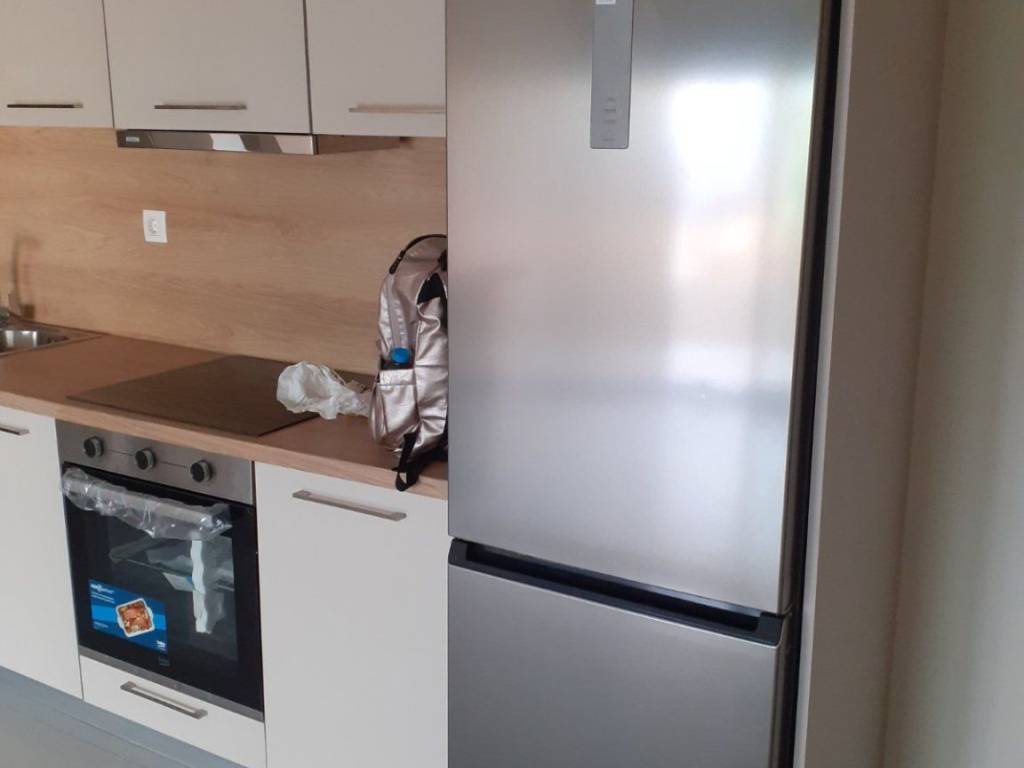 The apartment is in a newly built apartment building and has new household appliances (refrigerator, oven, ceramic hob, washing machine, AC). It will be fully furnished with a new double bed with orthopedic mattress, corner sofas that will become a double bed, living room composition, 32' smart TV, table - desk, curtains and screens on the balcony doors The apartment is energy class A + and has photovoltaics that pay part of the utilities from the electricity produced. It also has a parking space for a small car and an 8m2 storage room in the basement to which the elevator also goes down will be available from 1-4-2026