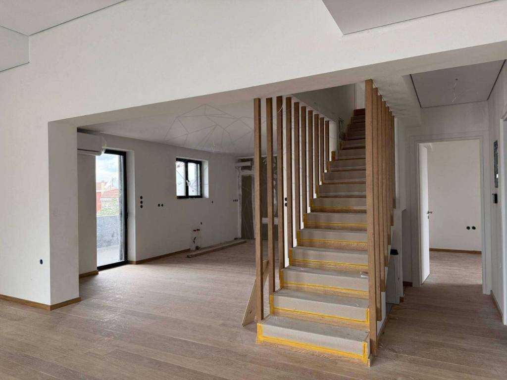 In one of the most strategic locations of Gerakas, just a 10-minute walk from the "Dukissis Plakentias" Metro/Suburban station, an impressive newly built maisonette with a total area of ​​137 sq.m. is for sale. This is the privileged property (C2 - right side) of the complex, which stands out as the largest in terms of square footage, offering comfort and exclusivity. Layout & Levels The residence is developed on the 2nd floor and the Attic, combining ergonomics with high aesthetics. Interior Spaces: Spacious living room with large openings that allow natural light to flood the space, functional bedroom layout and loft that can function as a master suite, office or guest house. View: The property offers unobstructed, panoramic views that "embrace" the basin, from the mountain of Penteli to Ymittos, offering images of relaxation at all hours of the day. Construction Quality & Materials The construction has been made with strict quality standards and an emphasis on energy efficiency and design: Energy Frames: High thermal insulation aluminum with double glazing for maximum economy and sound insulation. Design: Branded Italian kitchens of high aesthetics. Sanitary ware: Luxury Ideal Standard items, Grohe faucets and built-in faucets (recessed), which give minimal character to the bathrooms. External & Auxiliary Spaces Verandas: Impressive outdoor areas with a total area of 67 sq.m., ideal for moments of relaxation or BBQ. Storage: Large basement warehouse 8.4 sq.m. as well as practical internal storage of 2.5 sq.m. inside the house. Parking: Exclusive parking space (P-5) of 12.15 sq.m. Exterior Layout Note: The exterior layouts in the ad are an architectural design proposal (photorealistic plans) to show the potential of the property. The specific configuration (eg pergolas, planting) is not included in the listed price, however it is possible to implement it after consultation at an additional cost. EstatePro's view: An ideal choice for those who work in the Northern Suburbs or the Center and are looking for the Gerakas quality of life without being dependent on a car. The property combines the quietness of the area with direct access to Attiki Odos and the Metro. Ask to see the floor plan of property C2. Call EstatePro for an appointment.