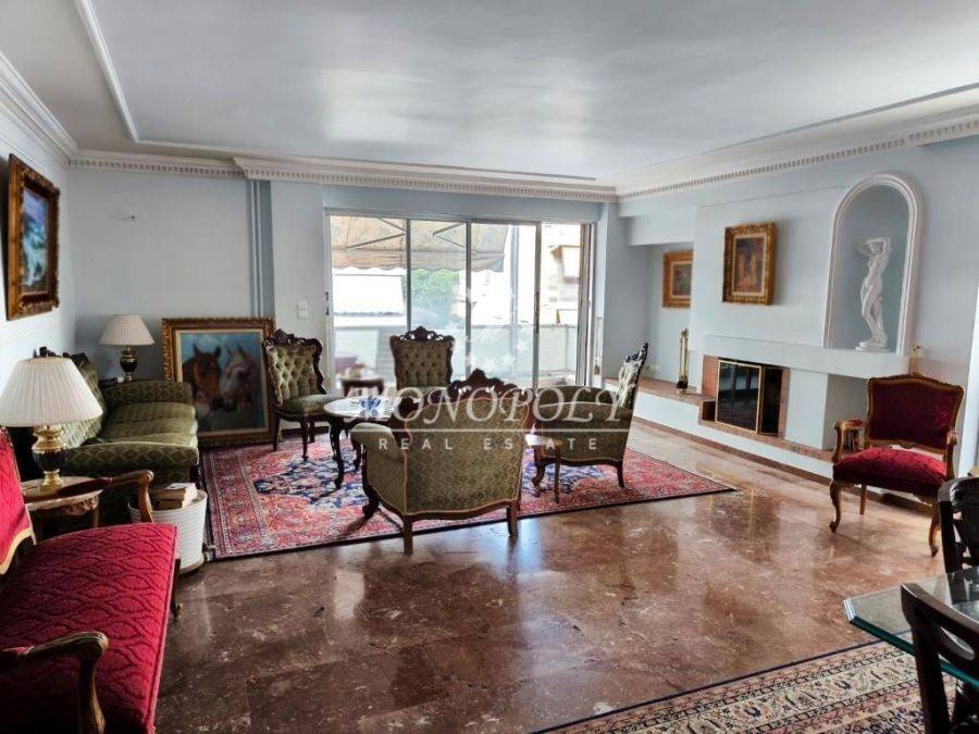 Paleo Faliro - Center, 134sqm apartment, 3rd floor, airy, constructed in 1977, energy class E. It has a large & bright lounge, with marble floor, large and beautiful fireplace, and access to the front terrace with awnings. It has an open dining area, from which we enter directly at the hallway, or the kitchen through a hidden door. The kitchen is renovated, spacious and bright, with fitted appliances, a large refrigerator and a dining area, and access to the side balcony. The corridor leads to bedrooms, bathroom and the WC. The first bedroom is the smallest but with wardrobes and access to the side balcony. At the end of the corridor there are 2 large bedrooms with wooden floors, wardrobes and access to a common rear balcony. The bathroom has a bathtub and a window of the airway, as well as the WC. Both have new aluminum frames and a storage space on top. There are electric awnings that open automatically when there is sunshine. It is painted, in very good condition, and has autonomous heating with natural gas, air conditioning, security door and storage room in the basement. It is located in a great spot, next to various shops, 500 meters away from the sea side and the beautiful park of Floisvos. *Property location on the map can be approximate and not exact. *ID or Passport and TAX number are required for visiting the property, from each person that will be present.