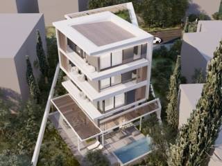 Voula - Pigadakia penthouse minimal design luxurious maisonette 223 sq.m. with amazing sea views. Construction year 2024 . Boasting four master bedrooms, 4 bathrooms, two guest WC, luminous living spaces with wooden floors,, open plan kitchen, autonomous underfloor heatingwith heat pump, air conditioning, boiler, alarm system, photovolatic panels, The highlight of this extraordinary residence is the expansive 112 sq.m. of verandas, featuring a jacuzzi, creating a captivating outdoor retreat for relaxation and entertainment. The residence comes with a spacious storage room of 21 sq.m. and in the basement two parking spaces, and access to the gym.