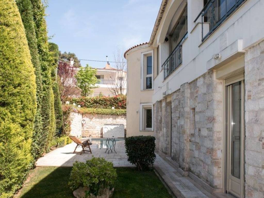 Στα σύνορα με την Εκάλη, μια αναπνοή από το Αρσάκειο της Εκάλης, βρίσκεται αυτή η υπέροχη μονοκατοικία ισογείου και 1ου ορόφου, όπου αξίζει να σημειωθεί πως και οι δύο όροφοι ουσιαστικά είναι ισόγειοι με πρόσβαση στον κήπο, καθώς έχει γίνει άριστη εκμετάλλευση της κλίσης του εδάφους κατά την κατασκευή του ακινήτου. Το σημείο είναι εξαιρετικό, καθώς προσφέρει εύκολη πρόσβαση σε σχολεία, super market, παιδικές χαρές, κέντρα αναψυχής, γυμναστήρια, καθώς και στην Εθνική Οδό (σε 5'). Το επίπεδο ασφαλείας είναι υψηλό, καθώς στο συγκεκριμένο οικοδομικό τετράγωνο υπάρχουν μόνο τέσσερις μονοκατοικίες, δυο εκ των οποίων έχουν 24ωρη μόνιμη ασφάλεια. Η μονοκατοικία κατασκευάστηκε για ιδιόχρηση και έχουν χρησιμοποιηθεί κορυφαία υλικά στην κατασκευή της - πατώματα από δρυ, μάρμαρο California και γρανίτη, διπλά θερμομονωτικά κουφώματα ΒΙΕΚΚΟ και πόρτες, μπάνια από μάρμαρο και όνυχα, εξαιρετικές κουζίνες πλήρως εξοπλισμένες με ανοξείδωτο και γρανιτένιο πάγκο, ενεργειακό τζάκι με επένδυση μαρμάρου, ηλιακό θερμοσίφωνα, ανεξάρτητες ζώνες θέρμανσης που χωρίζουν τους χώρους του σπιτιού και λειτουργούν με ασύρματους θερμοστάτες, η κουπαστή της εσωτερικής σκάλας είναι ένα έργο τέχνης από χαλκό και η οροφή του σαλονιού είναι 5 μέτρα ψηλή, με μια μοναδική κατασκευή που διαθέτει και ενσωματωμένα ηχεία. Τα 3 από τα 4 υπνοδωμάτια είναι master, με ανεξάρτητο μπάνιο και walk-in closet, και το ένα διαθέτει δικό του μαρμάρινο τζάκι. Ο χώρος που έχει διαμορφωθεί ως γραφείο και το playroom έχουν μεγάλες εντοιχισμένες βιβλιοθήκες εξαιρετικής κατασκευής. Πέρα από τη δεύτερη κουζίνα δίπλα στο playroom, υπάρχει και ένα επιπλέον κουζινάκι και μια μικρή αποθήκη, πέρα από την πολύ μεγάλη αποθήκη των 100 τμ. Διαθέτει ΙΡ κάμερες περιμετρικά του ακινήτου και συναγερμό με τηλεχειρισμό. Η μονοκατοικία διαθέτει άπλετους εξωτερικούς χώρους και βεράντες περιμετρικά του ακινήτου, που βλέπουν σε όλα τα σημεία του ορίζοντα, όλες στρωμένες με μάρμαρο και μεγάλες πλάκες. Ειδικά η βορινή βεράντα προστατεύεται περιμετρικά από ανοιγόμενα τζάμια σε όλο το ύψος της, ώστε να είναι φιλόξενη ακόμα και το χειμώνα. Επίσης η μονοκατοικία διαθέτει μεγάλο κήπο με πισίνα με ψηφίδα σε εξαιρετική κατάσταση. Όλα τα παράθυρα διαθέτουν σίτες και έχουν υπέροχη θέα στο πράσινο περιβάλλον του ακινήτου. Η μονοκατοικία έχει βαφτεί με τα καλύτερα υλικά μέσα και έξω το 2023 (όλοι οι εσωτερικοί τοίχοι είναι βαμμένοι με σατινέ χρώμα), όπως και έχει γίνει εκ νέου μόνωση στην ταράτσα και έχουν συντηρηθεί όλα τα κεραμίδια.