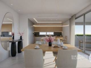 Glyfada Kato, Minimal Design, apartment for sale in a new four-story building, on the 1st floor of 104 sq.m., construction starting year 2025, south orientation, consists of a comfortable and bright living room - dining room area in continuation of the kitchen area - can be completely independent, two comfortable bedrooms, one of which is a master with a walk-in closet and the other, if the owner chooses, can be master, walk in closet, the bathrooms are minimal design, has large balconies and the building is energy class A+, with underfloor heating from a heat pump. For the Inside, particular emphasis has been placed on the optimal layout of the spaces, ensuring comfort and functionality in the residence, while at the same time the high-quality materials used upgrade the quality of the space. It has an air conditioning installation and natural gas supply. It is smart home and has a car charging facility. It has a parking space in the basement and a covered one on the ground floor. The building is located in an excellent location, a residential zone walking distance of the trade axis of the area, on the beach front of the Athenian Riviera, investment property, near the market, central square and close to means of public transport.