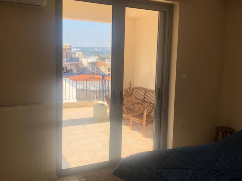 Luxurious and bright apartment ,available, fully furnished or unfurnished, 61 sq m, on the third floor, very bright and with 48 sq m balconies, in the center of Pyrgos, Germanou 3 street, in a building of 2007 and renovated in 2024. Master bedroom with possibility of a 2nd bedroom. Absolutely earthquake-proof building, elevator, soundproofing, view, autonomous central heating, air conditioning, television, refrigerator, on the most commercial street of Pyrgos.