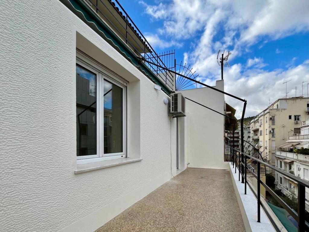 This 50m2 penthouse is located on Iridanou street between Vassilisis Sofias Avenue and Michalakopoulou street in the center of Athens. It is a very convenient situation as it is also close to the metro station Megaro Mousikis and many means of public transportation, while being walking distance to Syntagma Square as well. The property has just been fully renovated and presents a very functional space as there is a regular bedroom with a large wardrobe at rear, a central room as a living area that distributes to any other rooms and a second smaller room that can be an office, a separate dining room, a potential 2nd temporary bedroom. Kitchen and bathroom complete the interior all with access to natural light. A lovely veranda in front provides the property with a nice opening on the East side towards Ymittos mountain. Awnings will help create necessary shade in summer time.