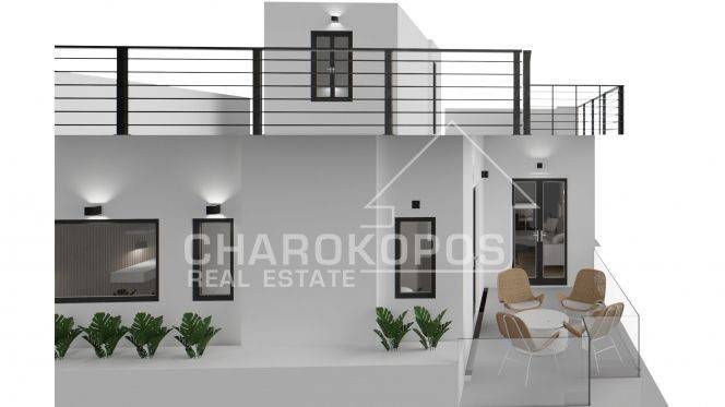 Maisonette radically renovated in 2025 and modernly furnished near the National Defense metro station and the Neo Psychiko Sports Center. 1st and attic maisonette, 115sqm, with reception areas, open plan with kitchen, 3 bedrooms, 2 bathrooms, large veranda and exclusive use of a 70sqm terrace. It has aluminum frames with double glazing, screens, heat pump, solar, fireplace, air conditioning, security door and unlimited view. It is located on a 155sqm plot and there is another maisonette on the ground floor radically renovated as well. The renovation has also been done externally to the building and to the common areas. Delivery September 2025. The location on the map does not indicate the exact location of the property, but is close to it. The brokerage fee in the event of a purchase and sale amounts to 2% of the total actual value of the main contract plus the legal VAT (24%). It is necessary to present the identity card and the VAT number for the indication of the property. On our website: https://www.charokopos.gr/ you can find more information and properties.