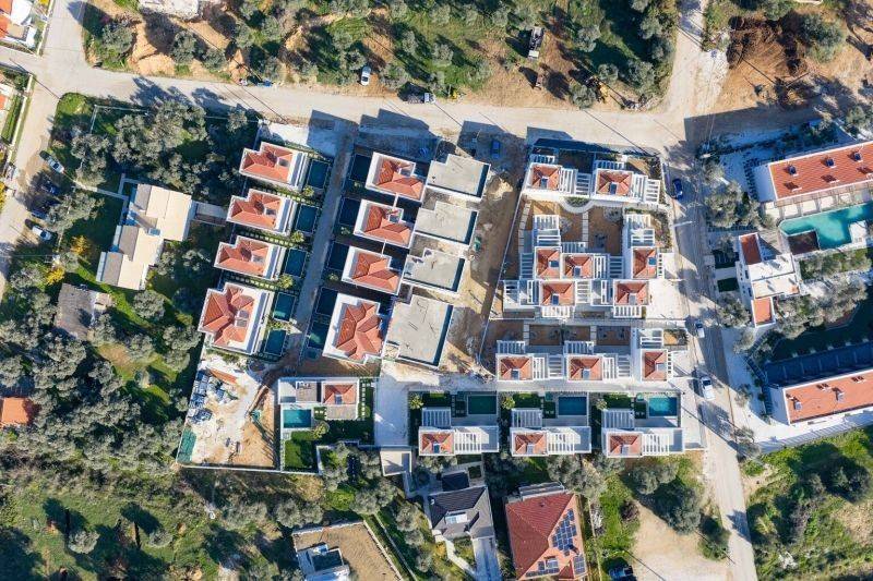 • 15 Κατοικίες από 101,81 τ.μ. έως 105,71 τ.μ. που αποτελούνται από σαλοκουζίνα, 3 υπνοδωμάτια, 2 μπάνια, ιδιωτική πισίνα.