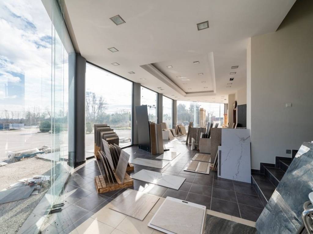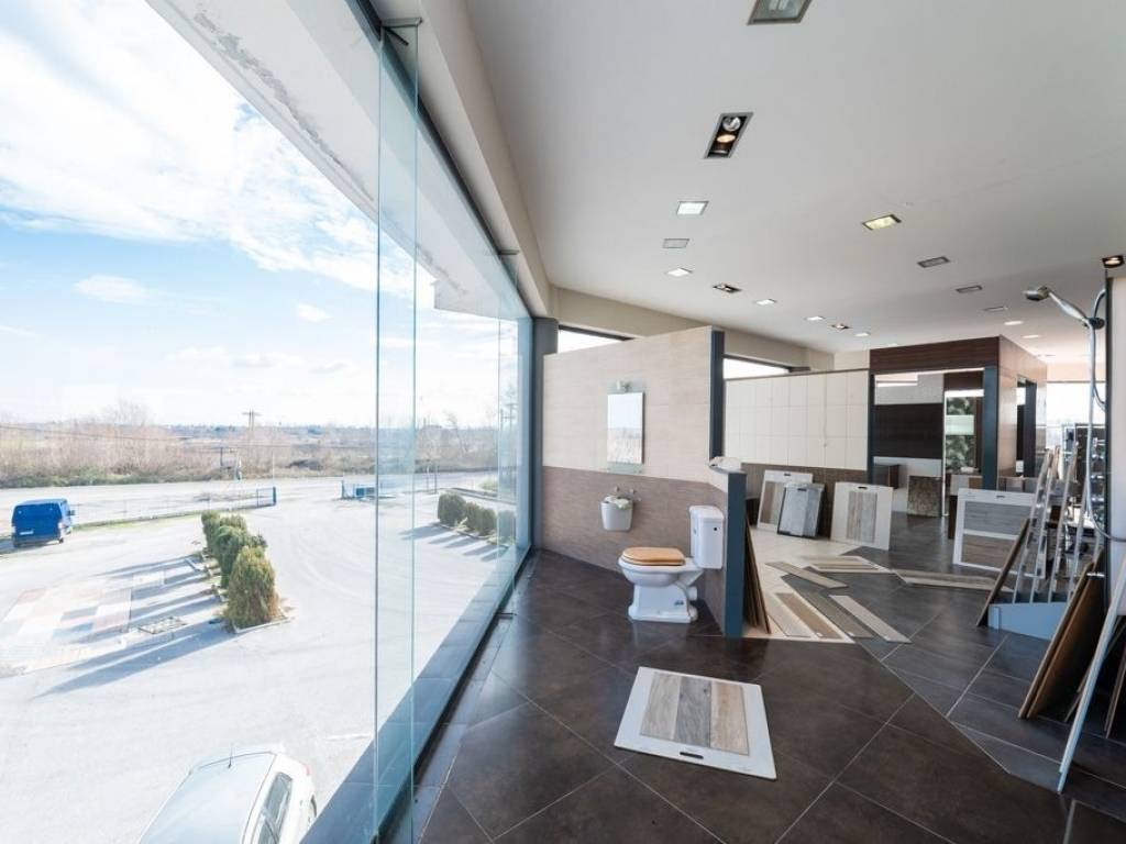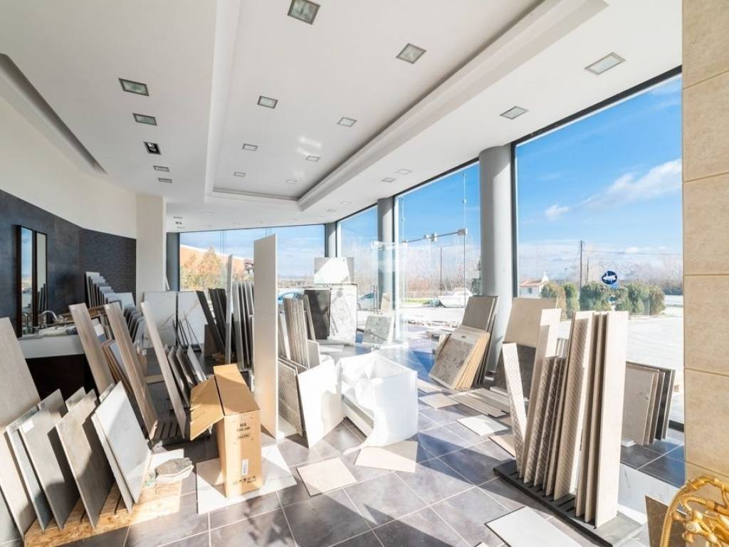 Το κτίριο βρίσκεται σε οικόπεδο 4.150,00 τμ και εκτείνεται σε δύο επίπεδα 600,00τμ περίπου το κάθε ένα, κατασκευασμένο με σκελετό οπλισμένο σκυροδέματος, κουφώματα και βιτρίνες από προφίλ αλουμινίου και διπλά τζάμια, θέρμανση μέσω κλιματιστικού. Ο περιβάλλον χώρος είναι διαμορφωμένος στο μπροστά μέρος ως χώρος υποδοχής και πάρκινγκ των πελατών και το πίσω μέρος ως χώρος αποθήκευσης μεγάλων διαστάσεων προϊόντων. Το ακίνητο αποτελεί μια πολύ ενδιαφέρουσα επενδυτική πρόταση μιας και βρίσκεται δίπλα στην διασταύρωση Χρυσουπόλεως, εύκολη πρόσβαση μέσω της Εγνατίας οδού καθώς και στο διεθνές αεροδρόμιο, Μέγας Αλέξανδρος.