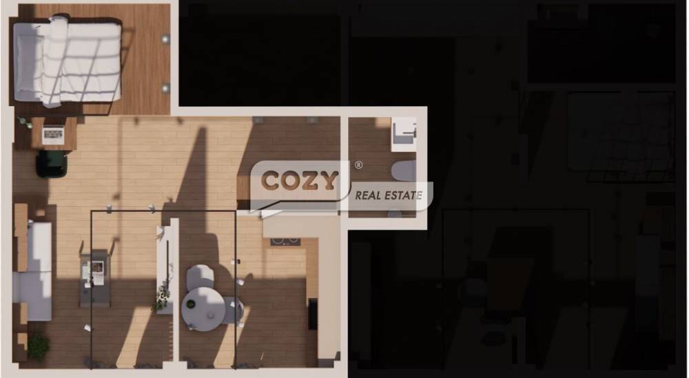 This property features 1 bedrooms, an open kitchen with a living room and a bathroom.