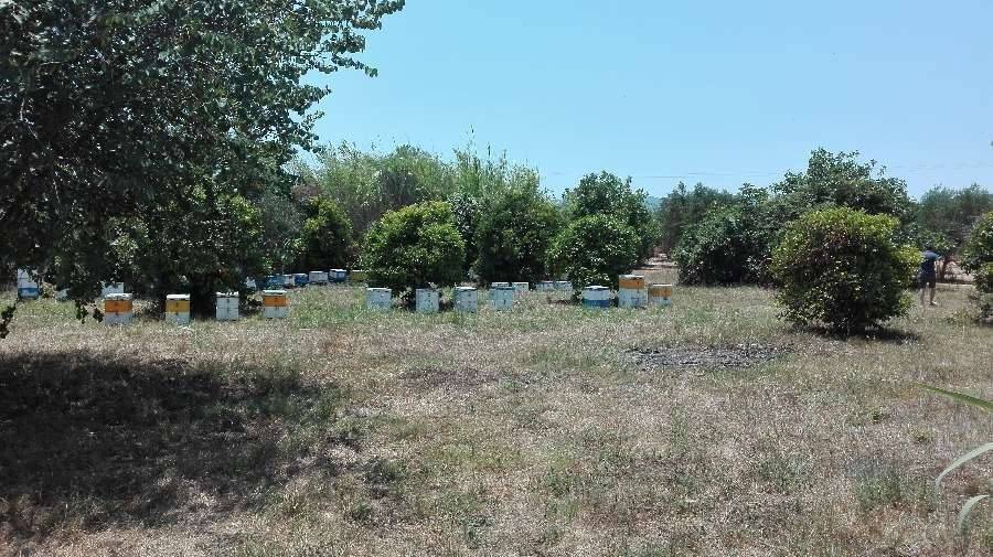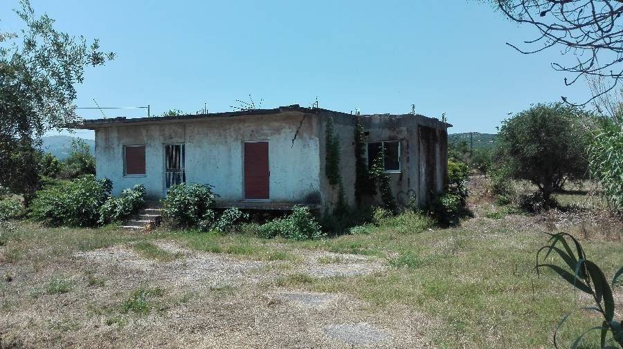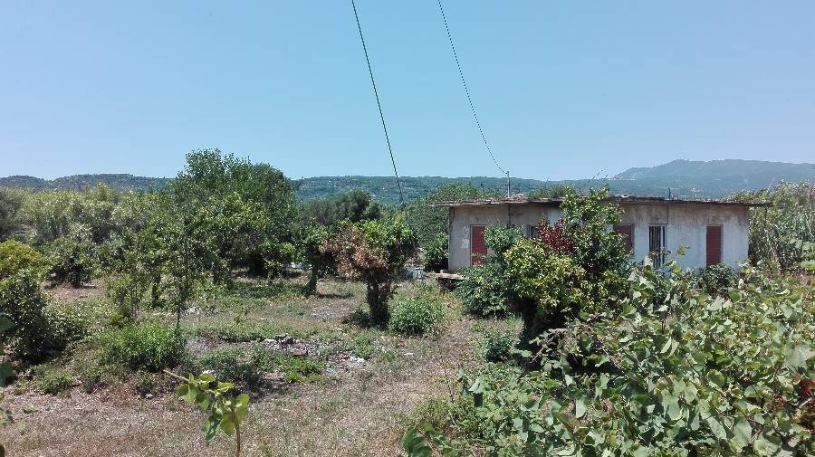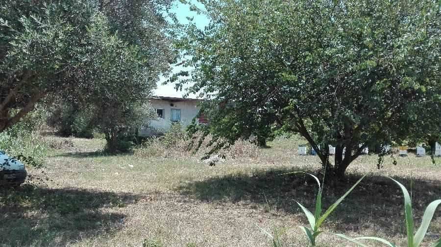 Plot (5500 m2) in Agios Andreas with a house (110 m2) and 70 trees (lemon trees, orange trees, olive trees...). The house has three bedrooms, bathroom, kitchen, living room and verandas with nice sea view to Messinian Bay and Taygetos mountain, 5 minutes by foot from the beach.