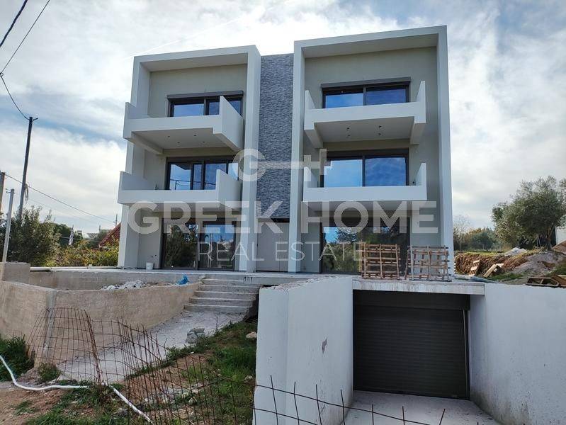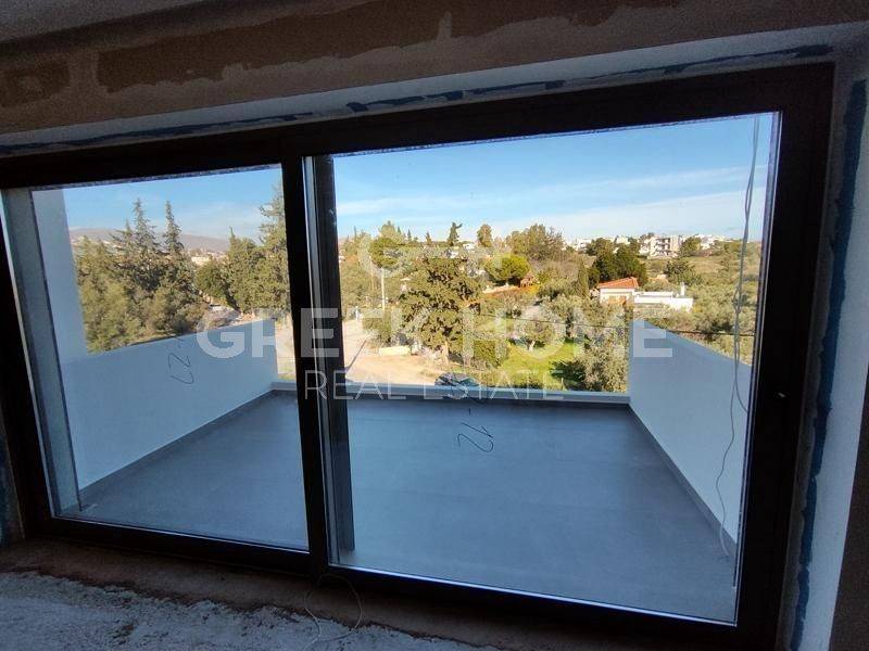 Pallini (Attica - Eastern Suburbs), Vakalopoulo - Tangent Maisonette 138sqm plot 410sqm, unfurnished, bedrooms 4, levels 2, 1st (75sqm, 2 bedrooms, living room, dinning room, kitchen, bathroom) - 2nd (63sqm, 2 bedrooms, bathroom), under construction, constructionstage frames, year built 2025, energy class A+, living room, kitchen, semi-outdoor space, 2 bathrooms, heating type: autonomous (fan coil), air condition, parking covered, quiet, dual aspect apartment, unobstructed view view, frontage, storage space, solar heater, external thermal insulation, balconies, large balconies, elevator, thermal shut-off frames, double glazed windows, door screen, ceramic tiles floors, office, night electricity discount rate, secure door, alarm, luxurious, internal staircase, satellite, laundry room, pets allowed, close to school (up to 500m), close to bus stop (up to 500m).