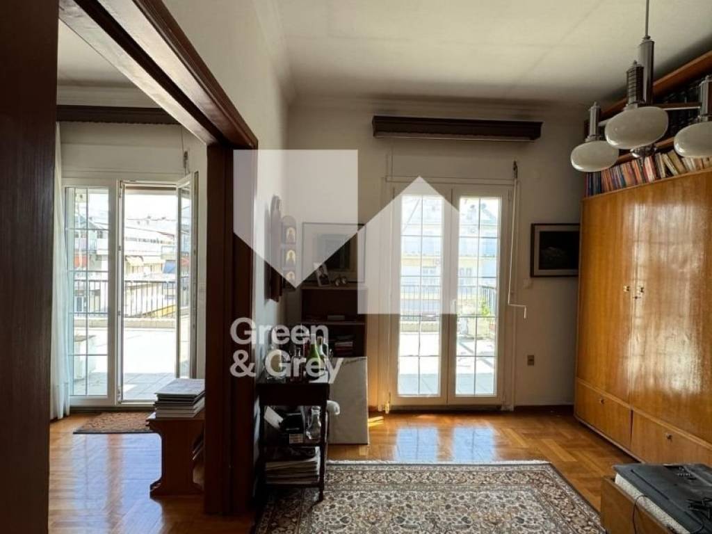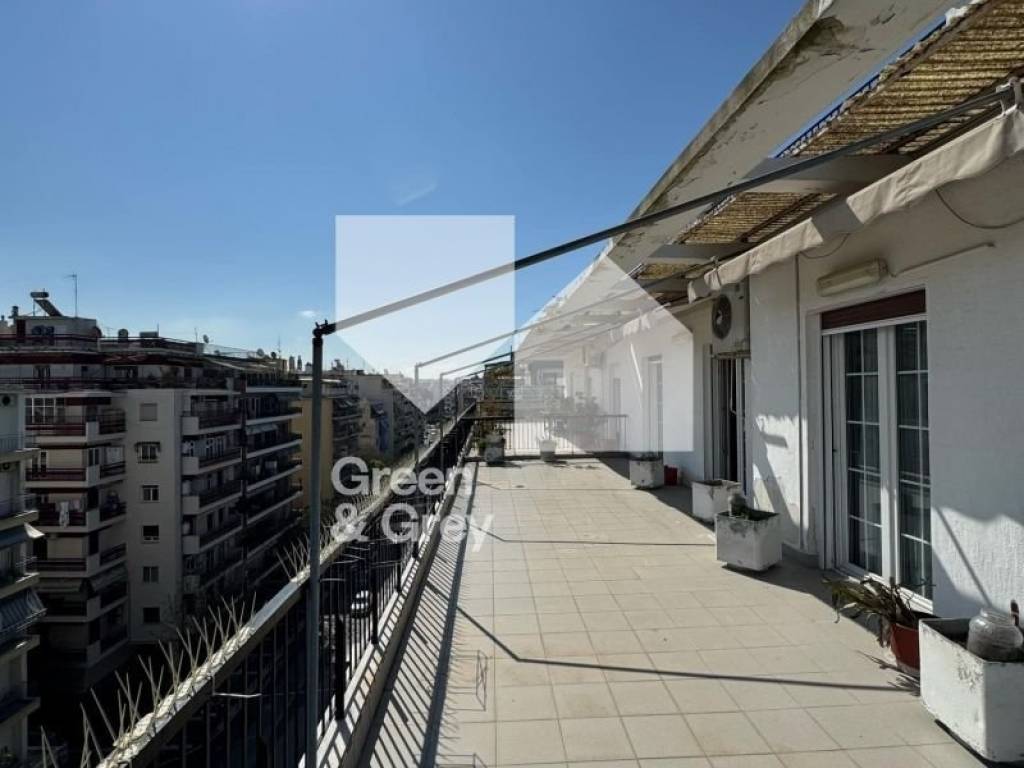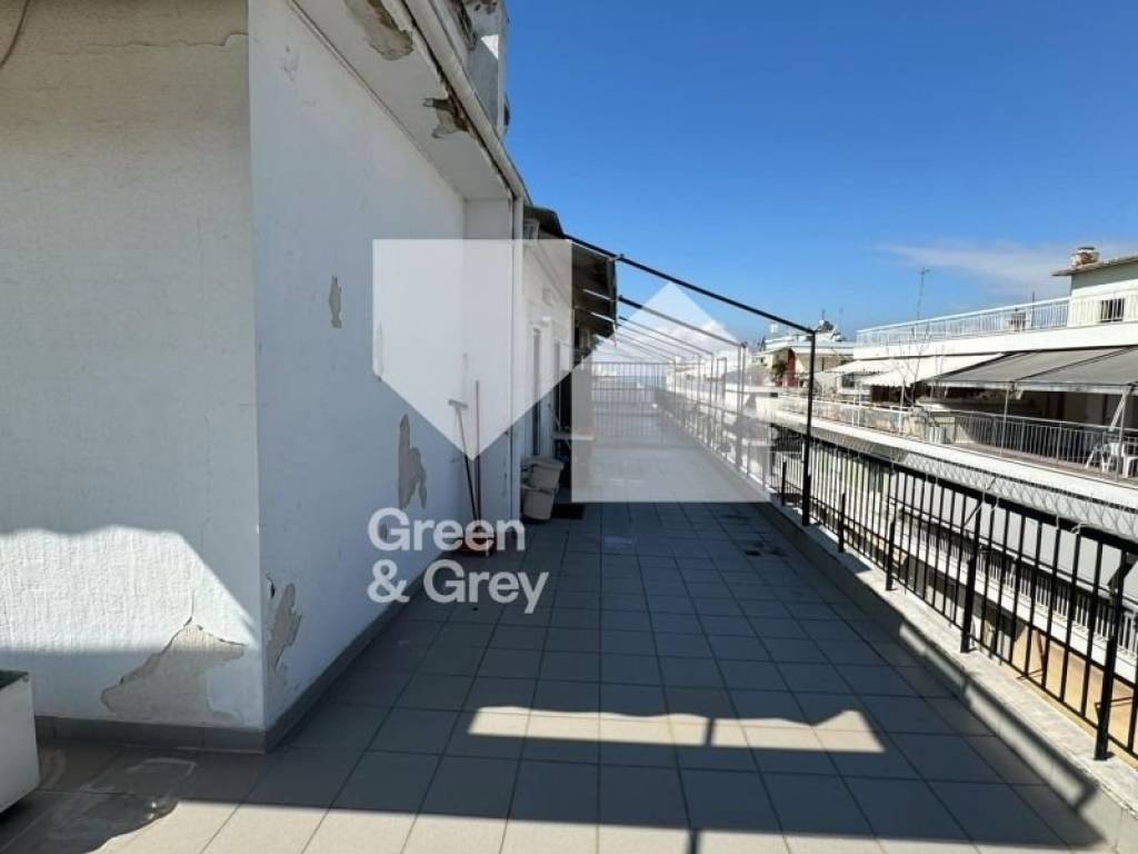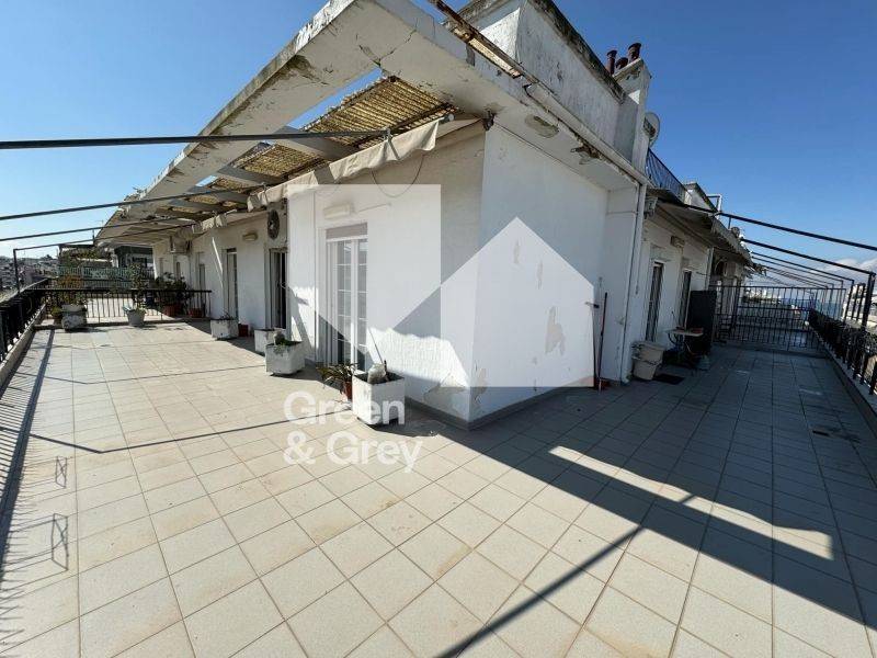 Penthouse on V. Olga, corner on the 7th floor of the building. The property consists of 100 sq m net and has 4 bedrooms, a living room, a kitchen, a bathroom and a WC. In addition, it has a 70 sq m corner terrace. The house is equipped with double-glazed aluminum frames. The building has a natural gas installation and the roof of the building is also insulated.