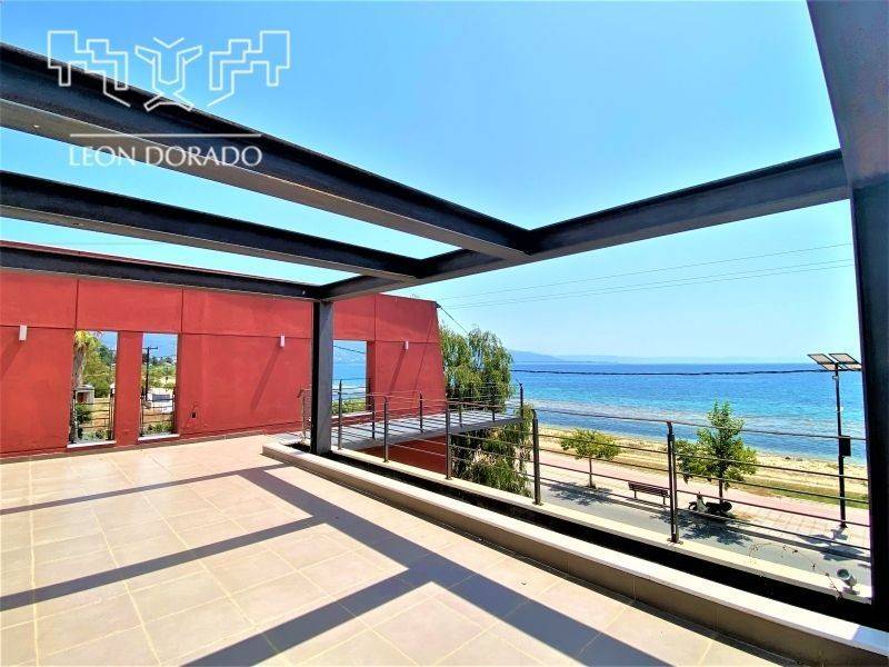 For sale: luxurious beachfront villa of 500 sq.m. on a 450 sq.m. plot, just 150 m from the sea and 4 km from the city of Volos. Developed over 3 levels: