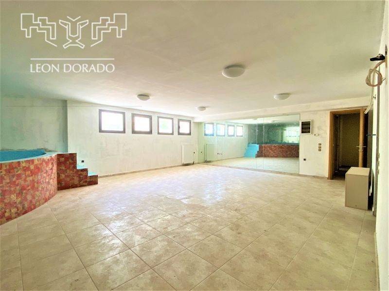 Basement with enclosed parking for 3 cars, laundry-drying area, boiler room, storage/shelter, and fully equipped spa with indoor pool, jacuzzi, changing rooms, and WC.