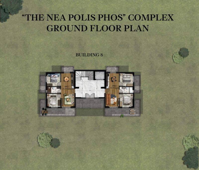 • 10 Διαμερίσματα από 72,63τ.μ. έως 82,60τ.μ, που αποτελούνται από σαλοκουζίνα, 2 υπνοδωμάτια, 1 μπάνιο.
