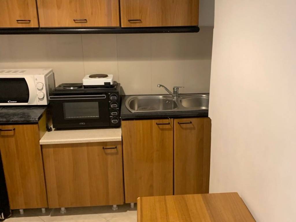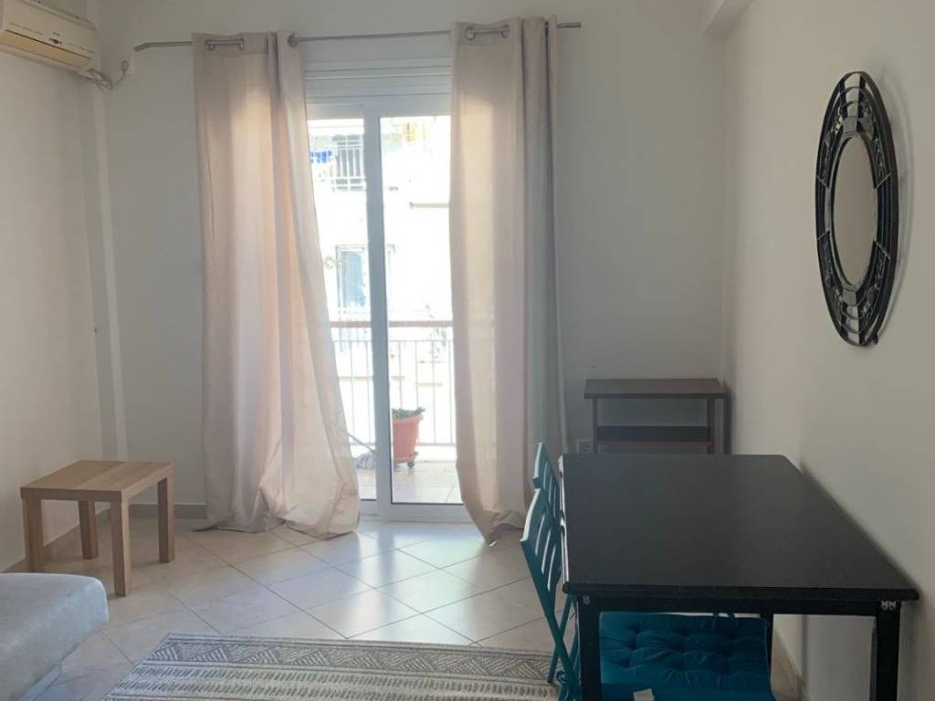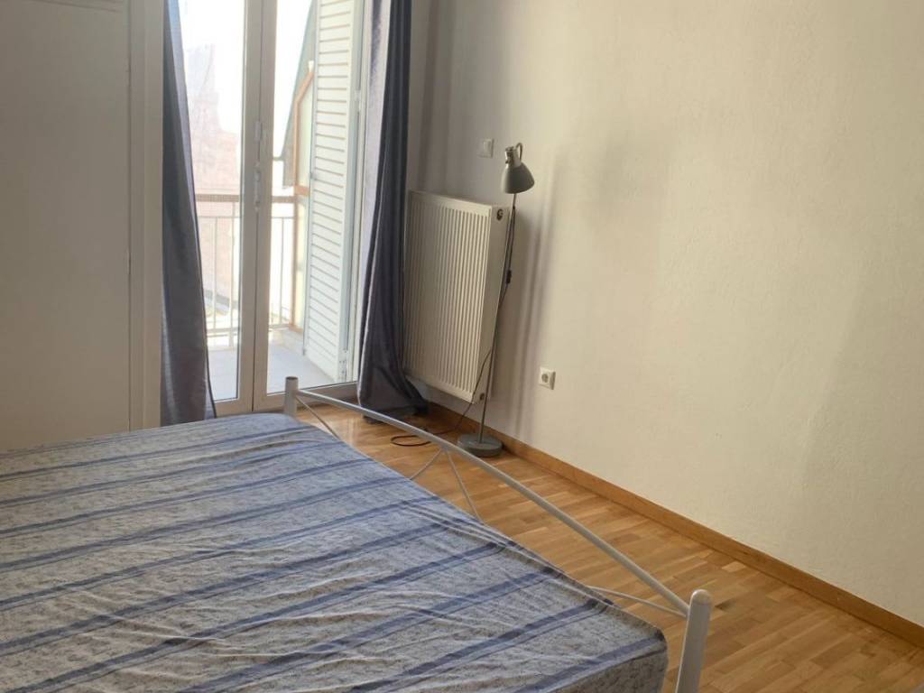The house is located on the 4th floor, between Eleftherios Venizelos Kallithea and Syngrou. 10' walk from Syngrou. Bus stop on Demosthenous. 1 bedroom, 1 living room, hall, kitchen, 1 bathroom, 2 balconies, 2 A/C, one in the living room and one in the bedroom. The building has an elevator, central heating with oil. It's warm in winter and cool in summer. The balcony overlooks the acalypse. The house is renovated, and furnished. It has fridge, sofa, oven, 2 A/C, bed, kitchen mat, microwave, table, chairs, bookcase, curtains, mirror, carpet, drawers, bedside tables, lamps.