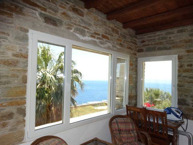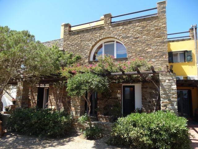 JUST 3km FROM THE PORT AND 200m FROM THE COASTLINE, DETACHED HOUSE 365m2, WITH GUEST HOUSE, IN EXCELLENT CONDITION, WITH A SHELTERED PLOT OF 2,000m2. IT HAS A PRIVATE DRILL & A PERMIT FOR THE CONSTRUCTION OF A SWIMMING POOL. In a privileged location with a magnificent view of the sea, easy access by car and within close proximity to the Port (3km), the Detached House was built for Private use and is characterized by its very good & solid construction. Is having a total surface area of 365sqm on 3 levels (Ground floor 183sqm + 1st floor 136sqm + 2nd floor 38sqm + 8sqm storage rooms) and enjoys a lush garden in a stone-fenced plot of 2,000sqm. In detail, it consists of 4 bedrooms all with their own full bathroom and the Master with Walk-in Wardrobes, 2 Living rooms both with access to verandas - courtyards and the garden, a separate Dining room, a WC, 2 Kitchens (main & auxiliary), Playroom and Storage areas. The Guesthouse is in contact with the Garden and has its own covered courtyard, consists of a single Living room and Bedroom, full Kitchen, Bathroom and Walk-in cloakroom. Furthermore, the Detach Residence enjoys a covered BBQ and a traditional Oven that can accommodate many people. Finally, it has a Private Water Drill, Water Tanks, a Valid Permission to construct a 30+5sqm Swimming Pool, Engineering Room and Autonomous Heating in all Areas and Rooms.