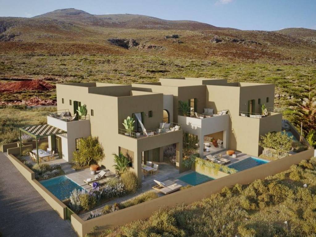 Modern two-level Villa (4/Y3) with 82.16 sq.m. living areas, located in the charming island of Kythira. This property is situated in Diakofti seaside village, just a few meters from the turquoise waters of Kythira coastline. The residence splits in two levels of covers 41.08 sq.m. each and includes 2 bedrooms and 3 bathrooms, suitable to host up to 5-6 guests. Ground floor includes a large area with the living room and the kitchen and a bathroom. In the ground floor level there is a terrace and a outdoor pool. The two bedrooms are situated in the 1st floor and both of them feature en-suite bathrooms. A beautiful yard offers cozy moments with family and friends, suitable for a much needed carefree relaxation time on a summer vacation. Diakofti is a picturesque village on the eastern coast of the island, with crystal-clear turquoise waters, sandy beaches and magnificent views. The village is just 10' driving distance from the airport, while Kythira's main port is located only a few minutes away from the property. The villa is ready and fully furnished. It is offered at a pre-sale price of € 360.000.