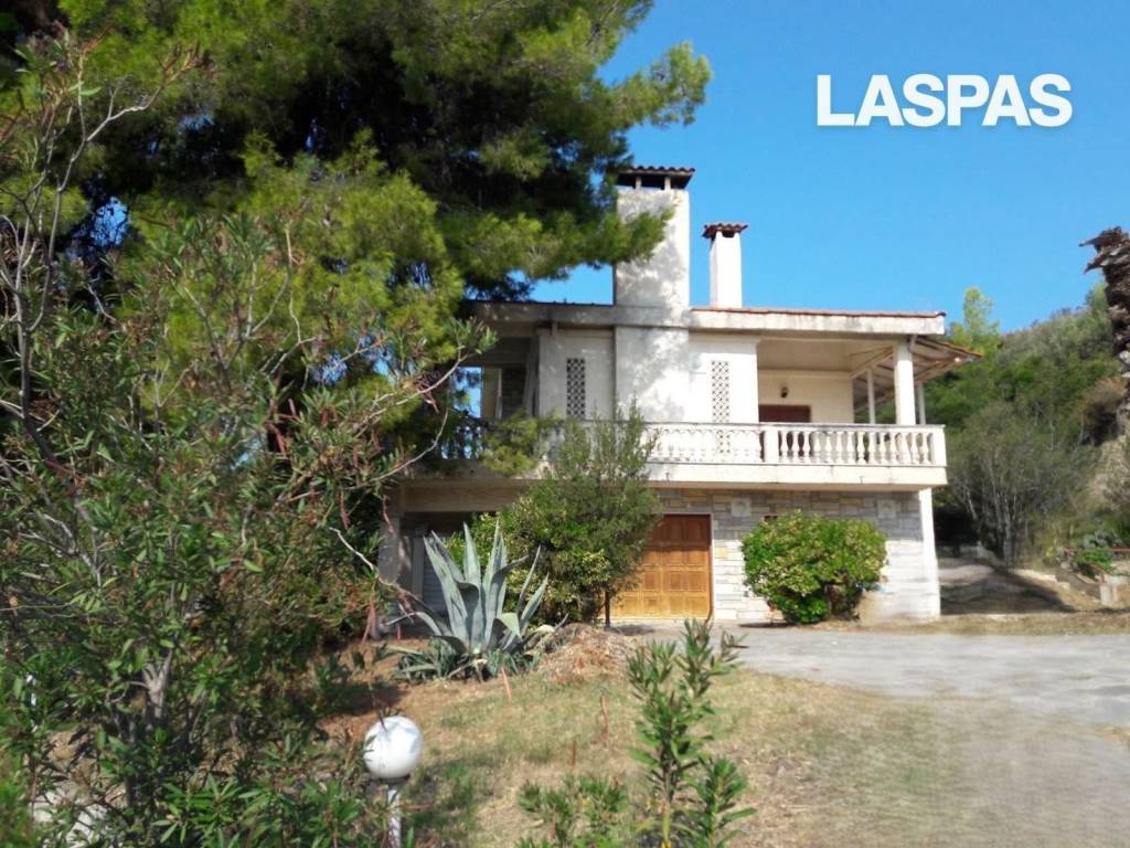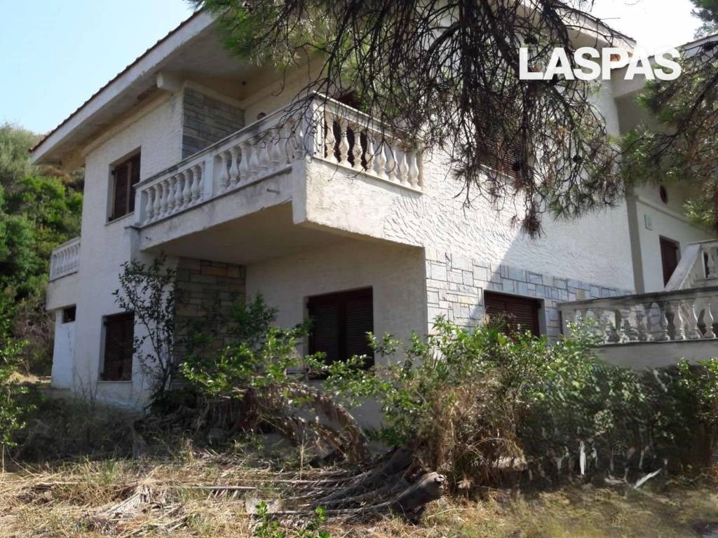 NEA SKIONI, Villa 300 sq.m. in 3.000 sq.m. plot, 3 levels, ground floor, year of construction 1980, needs renovation, seaview, 6 b/r, 2 living rooms, 2 fireplaces, 4 bathrooms, 1 WC, kitchen, with energy class E, garden 3.000 sq.m., distance from sea 120 m., distance from village 2.000 m., distance from city 20.000 m., distance from airport 90.000 m., distance from seaport 2.000 m., distance from hospital 20.000 m., with zoning housing, asphalt access, tilted inclination, price 600.000€, code 2471 Ace Estates, +30 23740 44191