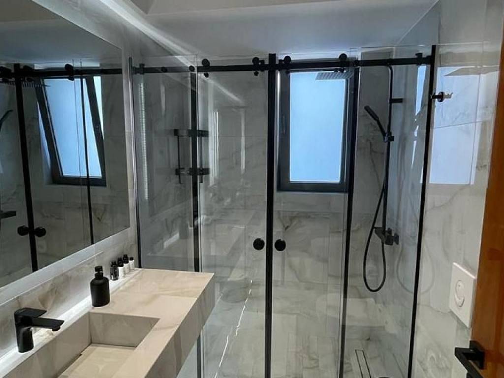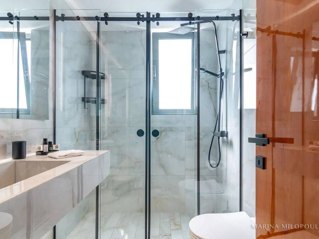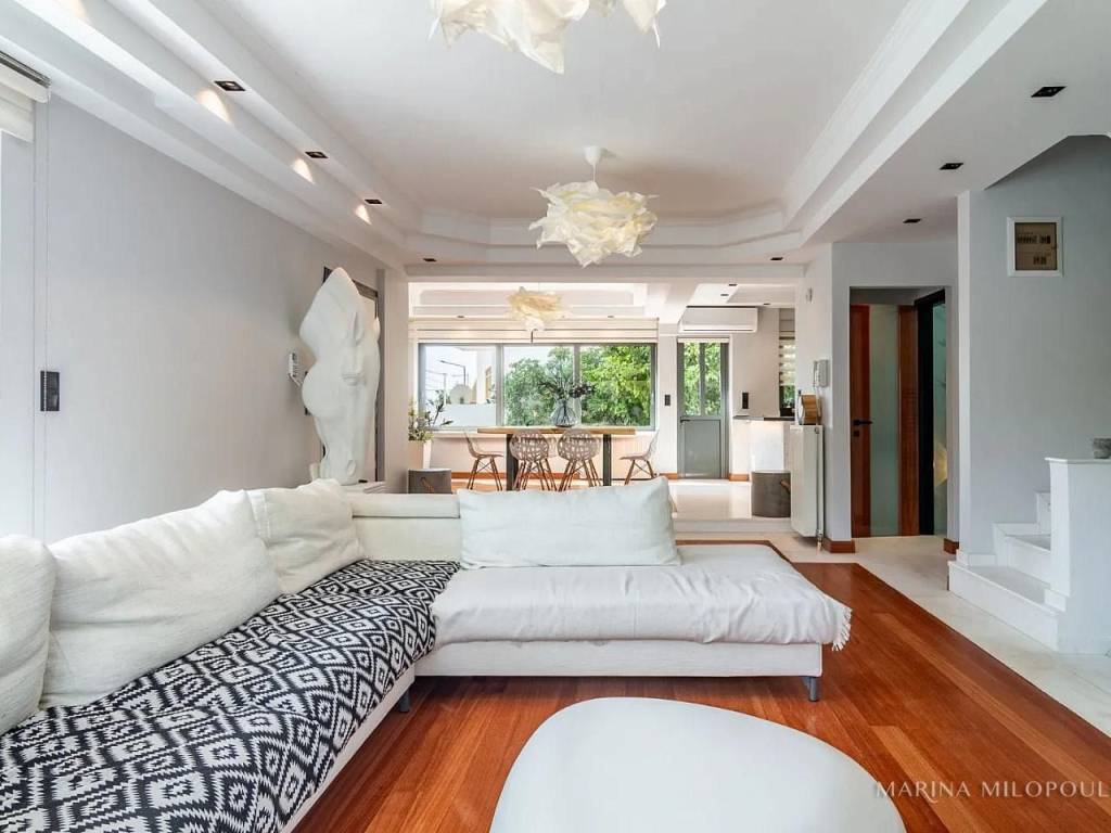Glyfada close to the Golf court and to Ellinikon Metropolitan Park, a 3 level corner detached house of 260 sqm, renovated in 2023, with pool and jacuzzi. Wonderful open horizon view from the roof top. - Elevated ground floor with living room, dining area,open plan kitchen and 1 wc, garden with the pool. - 1st floor with 3 bedrooms - one master- one more bathroom. - Roof top with jacuzzi , openair dining / living area. - Semi basement with living room, kitchen, bathroom and 1 bedroom. It features air conditioning, heat pump, double glazing, oak floors, solar water heater, screens, elevator, security alarm, 2 basement parking spaces and storage Distance 800 m fron the golf court, 2km from the public beach and the Marina of Glyfada, 3 km from the Ellinikon Metropolitan Park entrance and Glyfada's shopping area, 5 km from the 5* beach of the "One and Only Resort" and 26 km from the intern. airport.