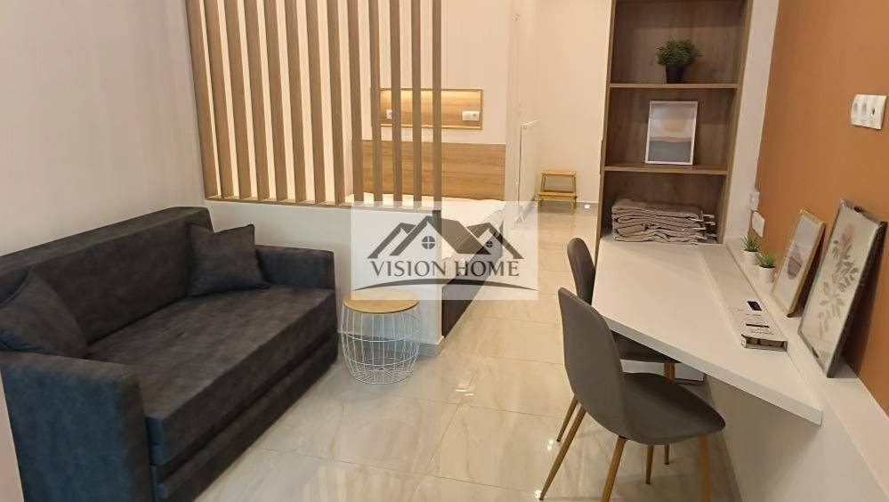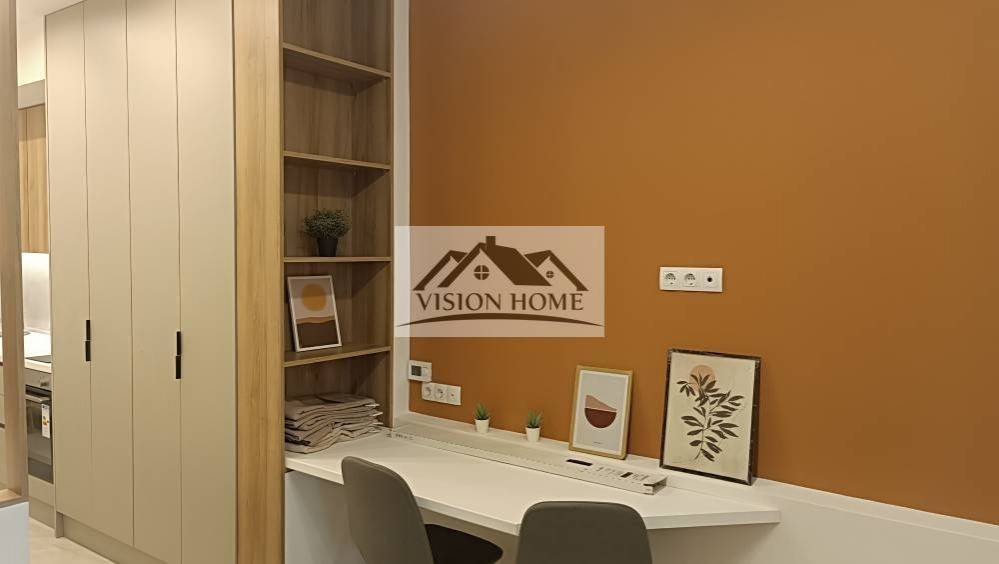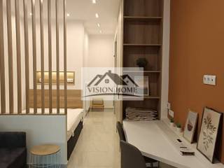 this property comes fully furnished including electronic devices (bed, wardrobe, living room table, sofa, desk, built in oven, refrigerator) with ceramic tiles flooring.